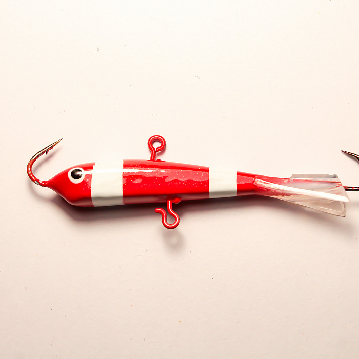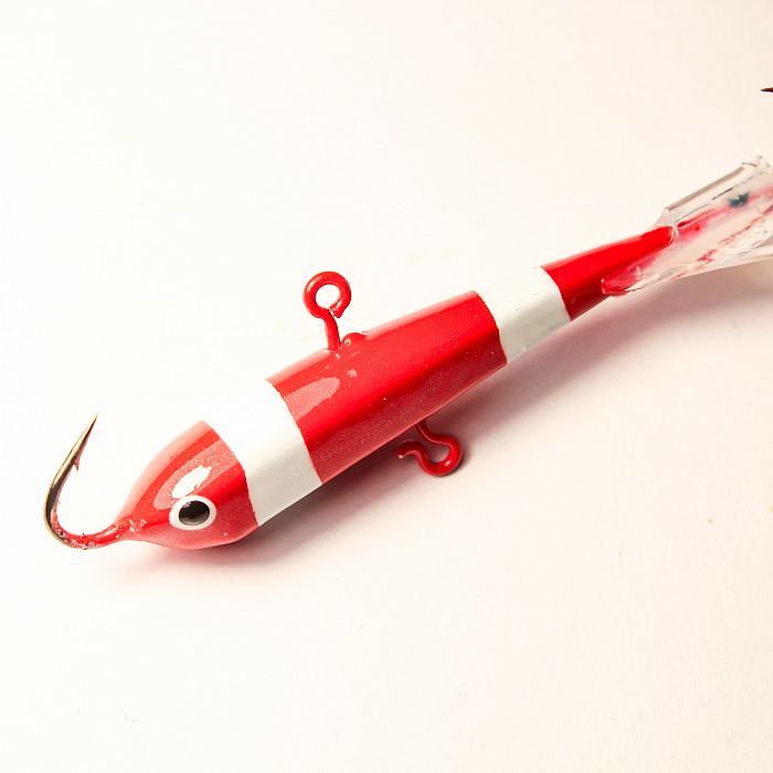 Залог удачной зимней рыбалки - правильно подобранная приманка. Предлагаем вашему вниманию балансир длиной 73 мм и весом 22 грамма. Красный с белыми полосами цвет тела приманки разработан специально для увеличения эффективности ловли хищника. Такой цветовой рисунок визуально выделяет приманку в воде, делая ее привлекательным объектом для нападения щуки и судака.