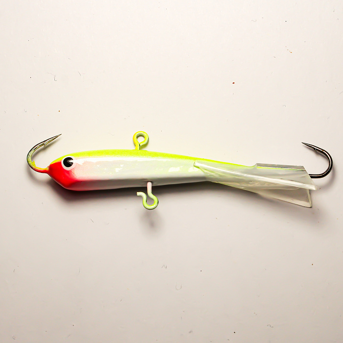 Опытные рыболовы знают, насколько важен выбор подходящей приманки для успешной зимней рыбалки. Одним из эффективных решений является данный балансир. Яркое сочетание жёлтых и белых оттенков с характерной красной головой сделает приманку заметной даже в условиях ограниченного освещения под водой.