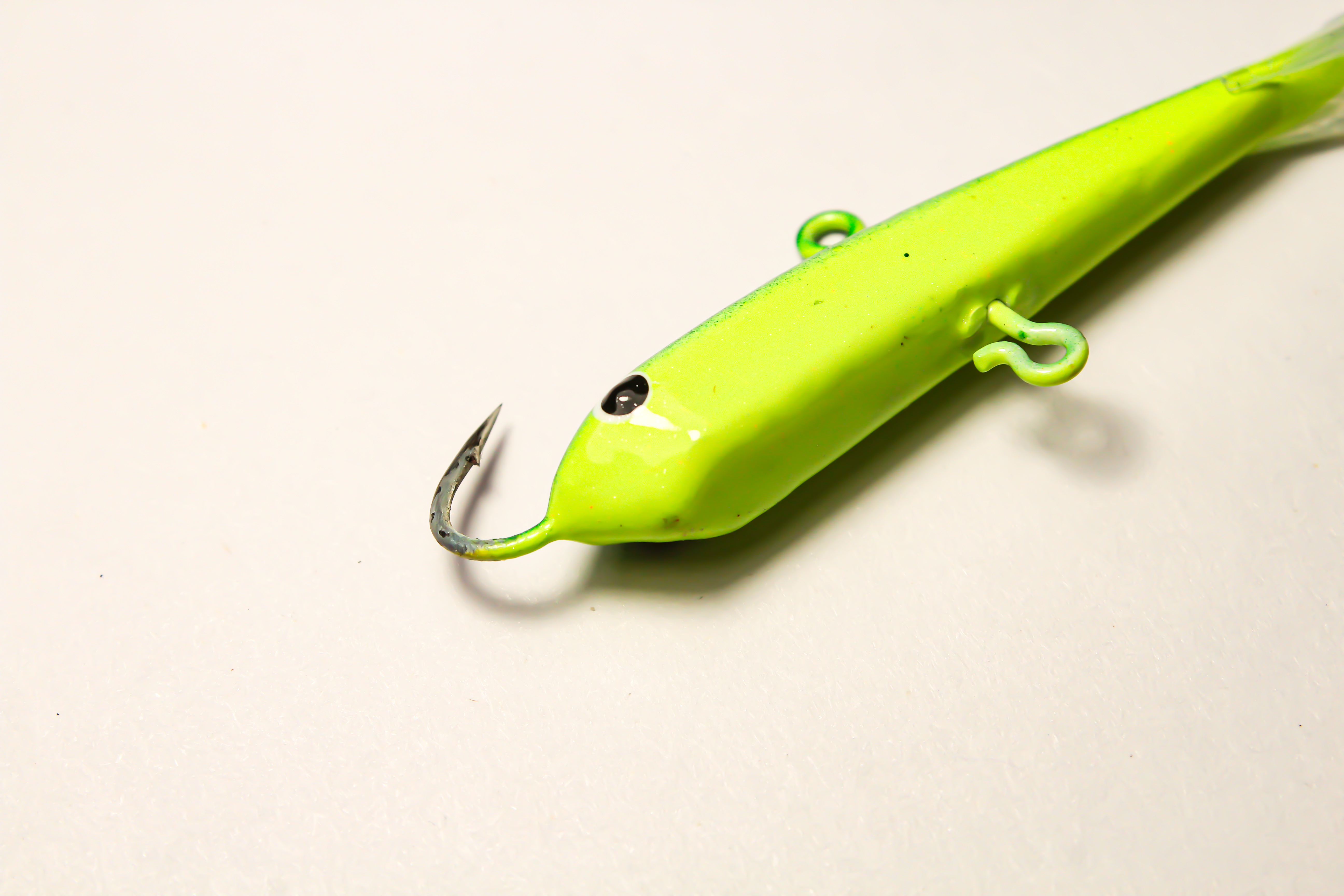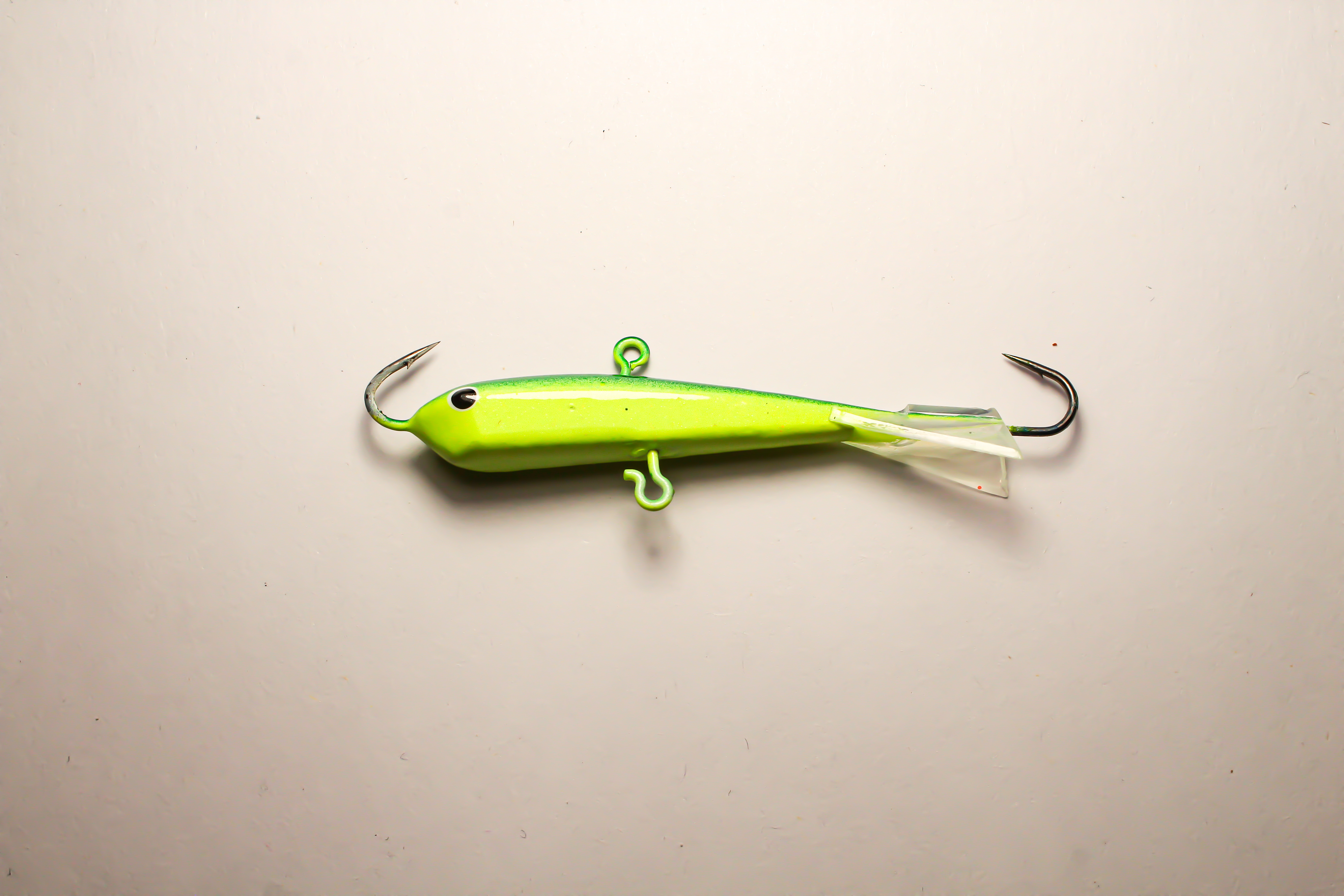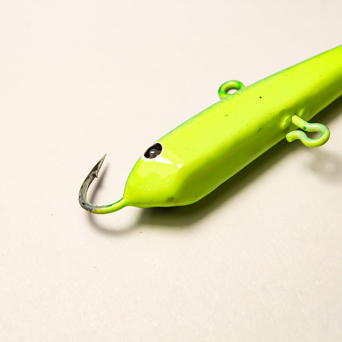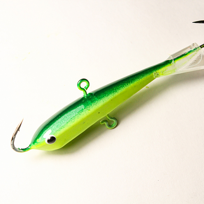 Хочешь удивлять окружающих своими трофеями и получать удовольствие от зимней рыбалки? Тогда обрати внимание на балансир длиной 73 мм и массой 22 грамма. Ярко-желтый с зеленым оттенком цвет приманки идеально имитирует мелкую рыбу, заставляя хищника активно реагировать на нее. Балансир изготовлен вручную, что обеспечивает высокое качество исполнения и надежность. Материал и технология производства подобраны таким образом, чтобы приманка долго служила своему владельцу, выдерживала любые нагрузки и приносила максимальный результат.