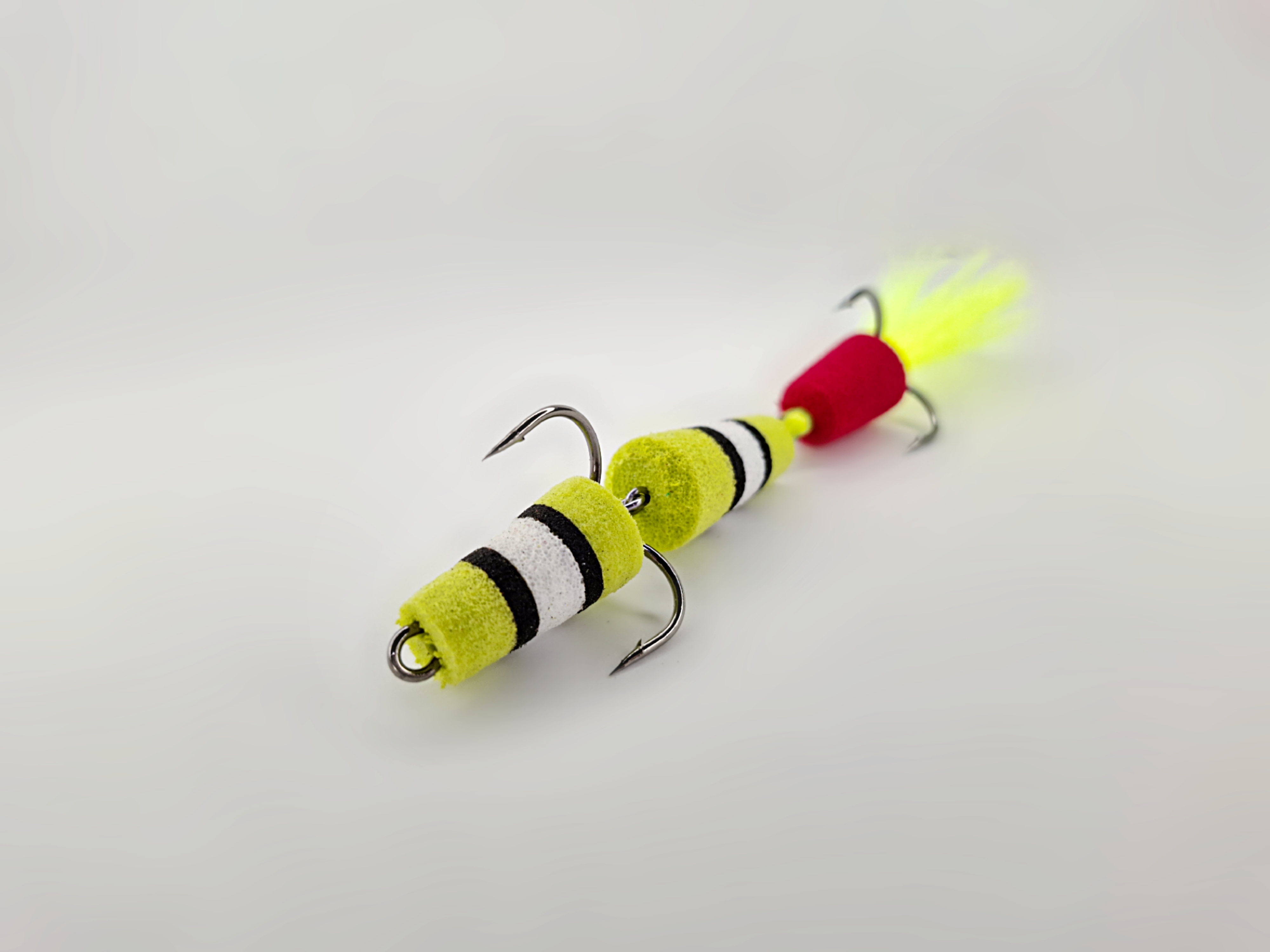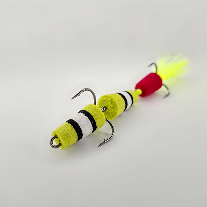 Ищете идеальную приманку для ловли щуки и судака? Обратите внимание на нашу мандулу размером 8 см! Эта приманка ручной работы сочетает в себе высококачественные материалы и яркие, привлекающие внимание цвета: желтый, белый и черные полосы. Особенность мандулы — уникальный элемент красного цвета, который выполняет роль точки атаки, привлекая внимание хищника и обеспечивая вам отличный улов.
