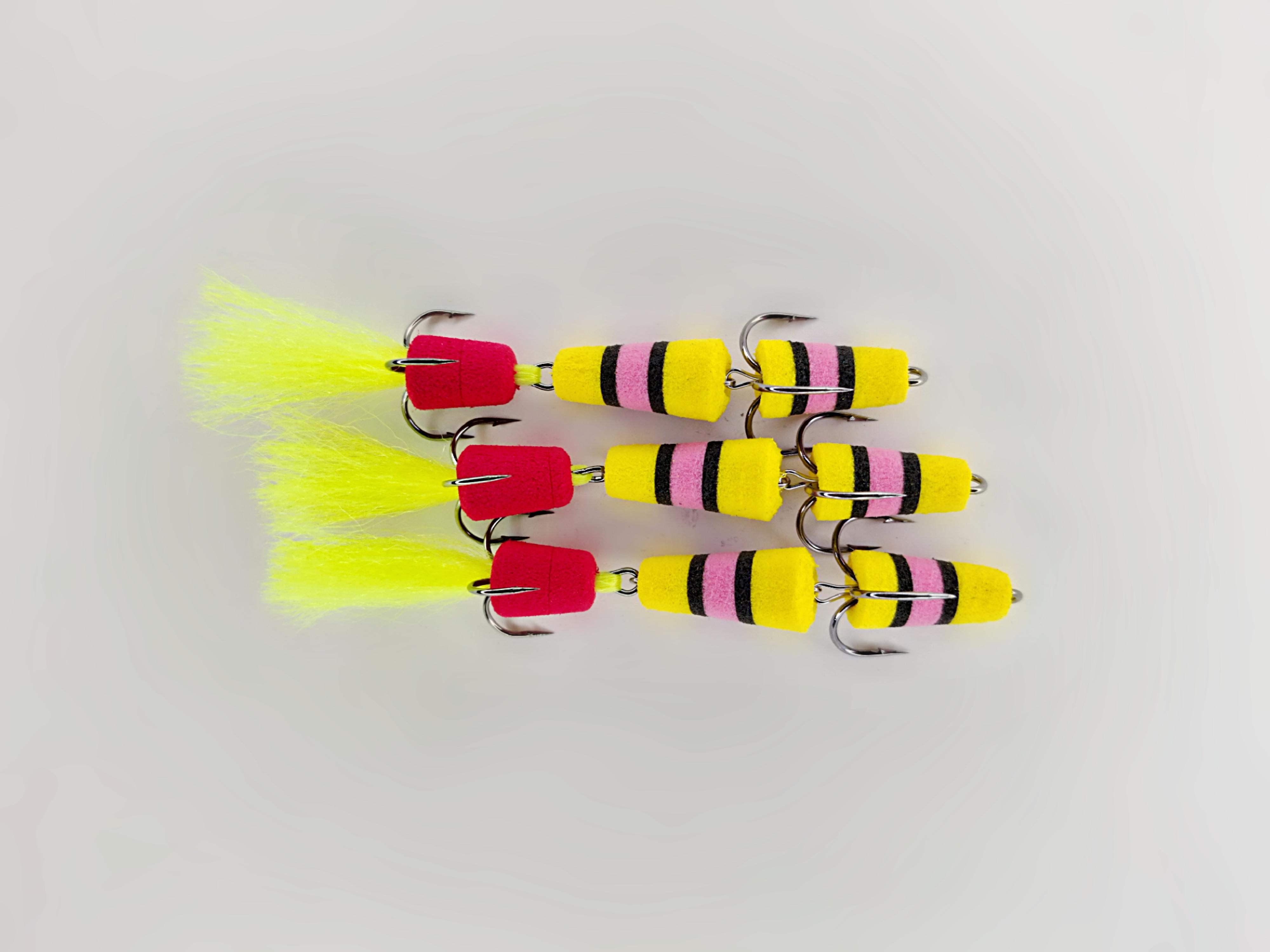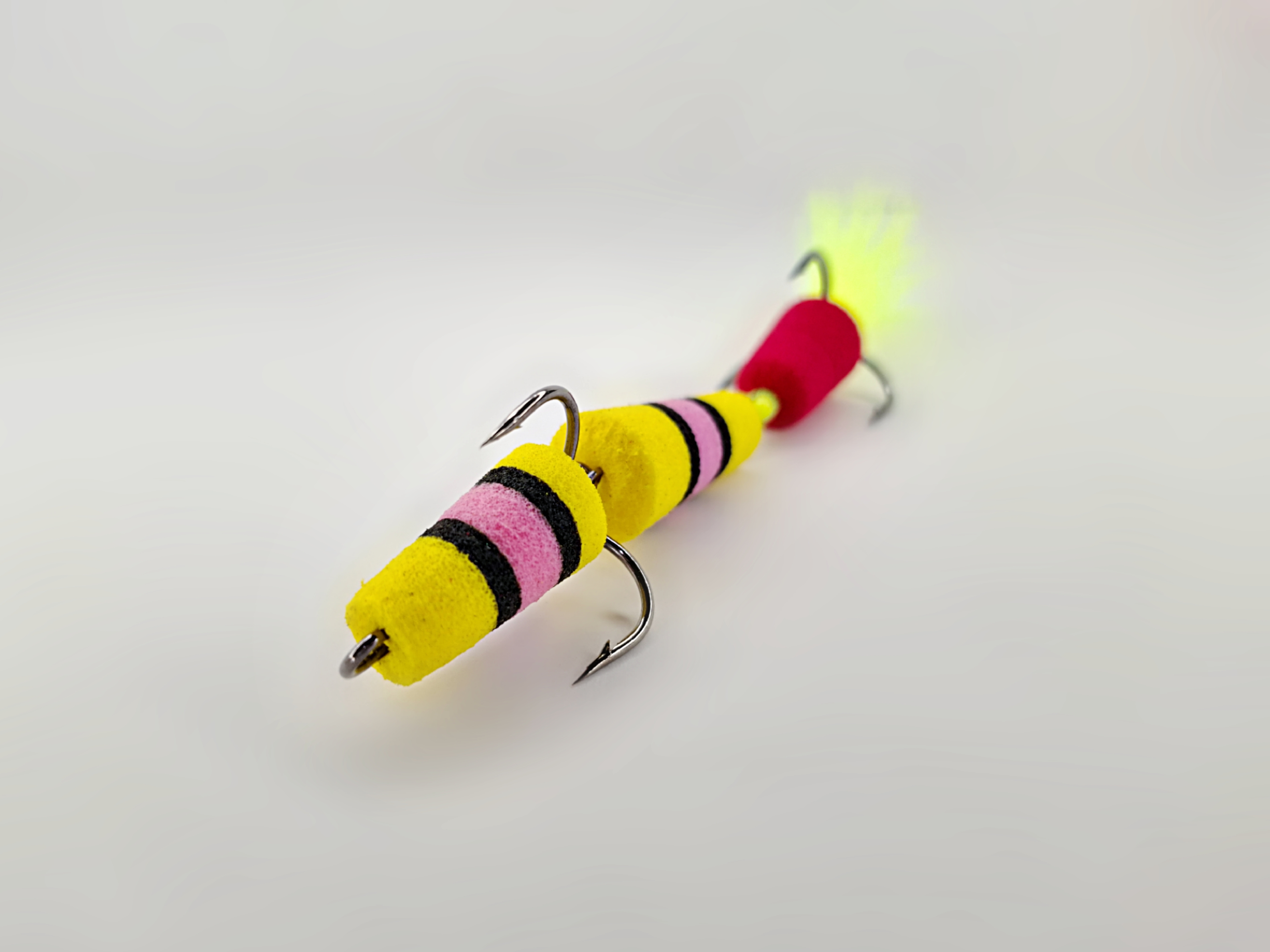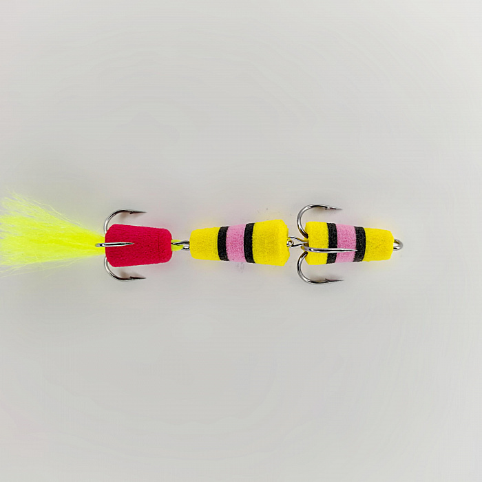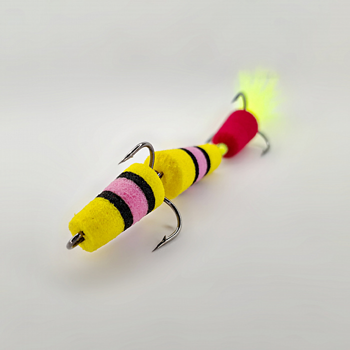 Мандула – идеальная приманка для увлечённых рыболовов, желающих повысить свои шансы на удачную рыбалку. С длиной в 8 см и яркой расцветкой, в которую входят желтый и розовый цвета с выразительными черными полосами, эта приманка привлекает внимание хищников, особенно щуки и судака. Особенностью мандулы является уникальный красный элемент, который выступает не только как яркая точка атаки, но и усиливает визуальное восприятие приманки, заставляя рыбу реагировать на неё активнее.