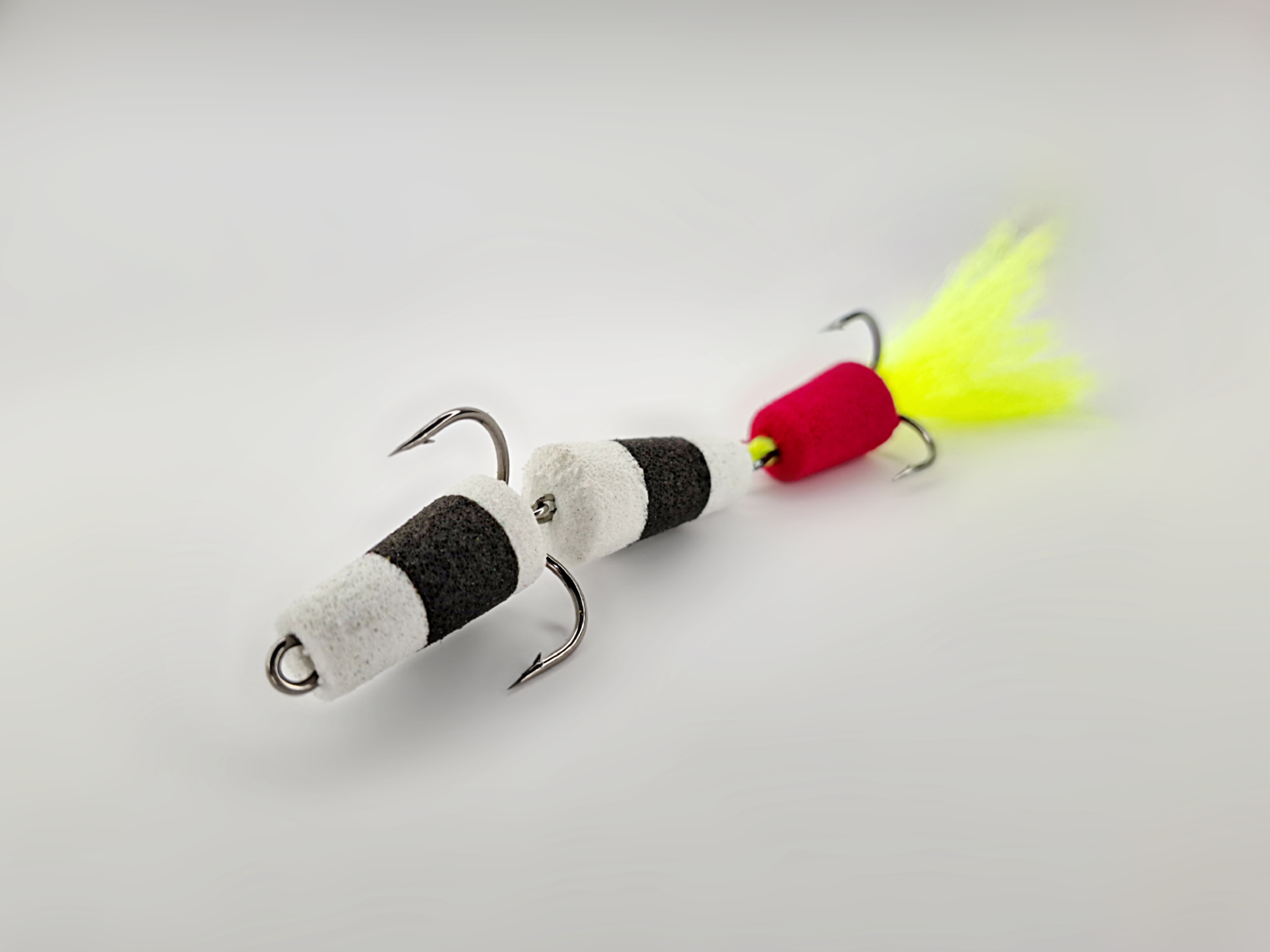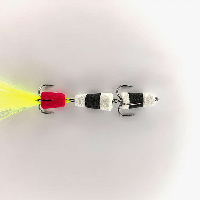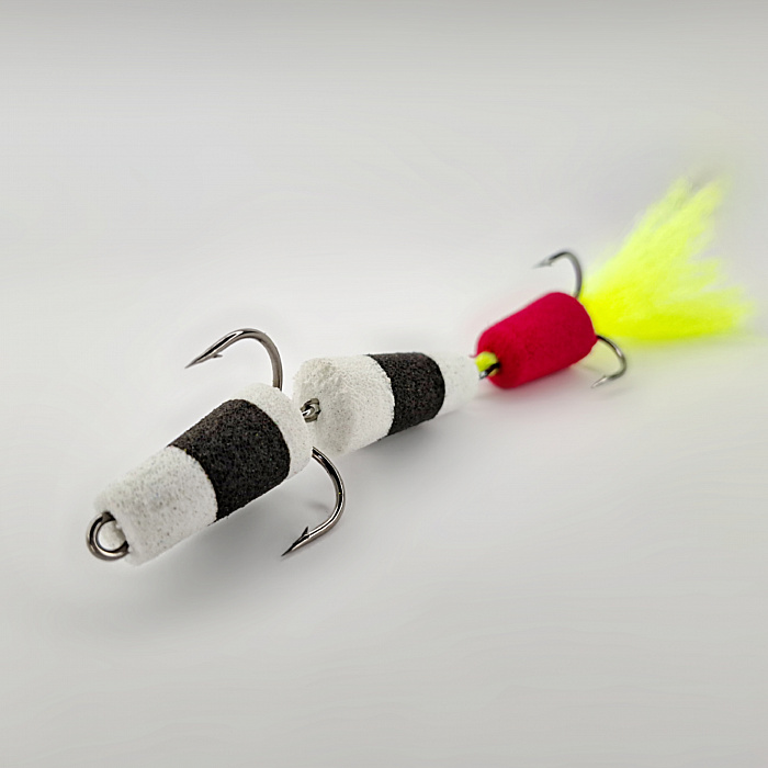 Мандула выполнена в классических цветах: белом и черном, что делает ее универсальной и привлекательной для большинства хищных рыб. Однако главной отличительной особенностью нашей приманки является яркий дополнительный элемент красного цвета, который привлекает внимание и выступает в роли точки атаки. Этот яркий акцент создает эффект завлекающего движения, заставляя хищников проявлять активность и реагировать на приманку.