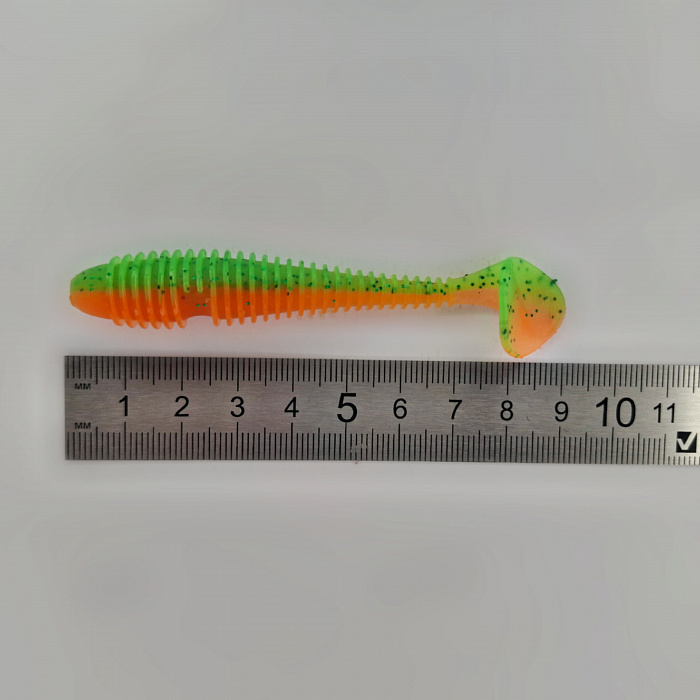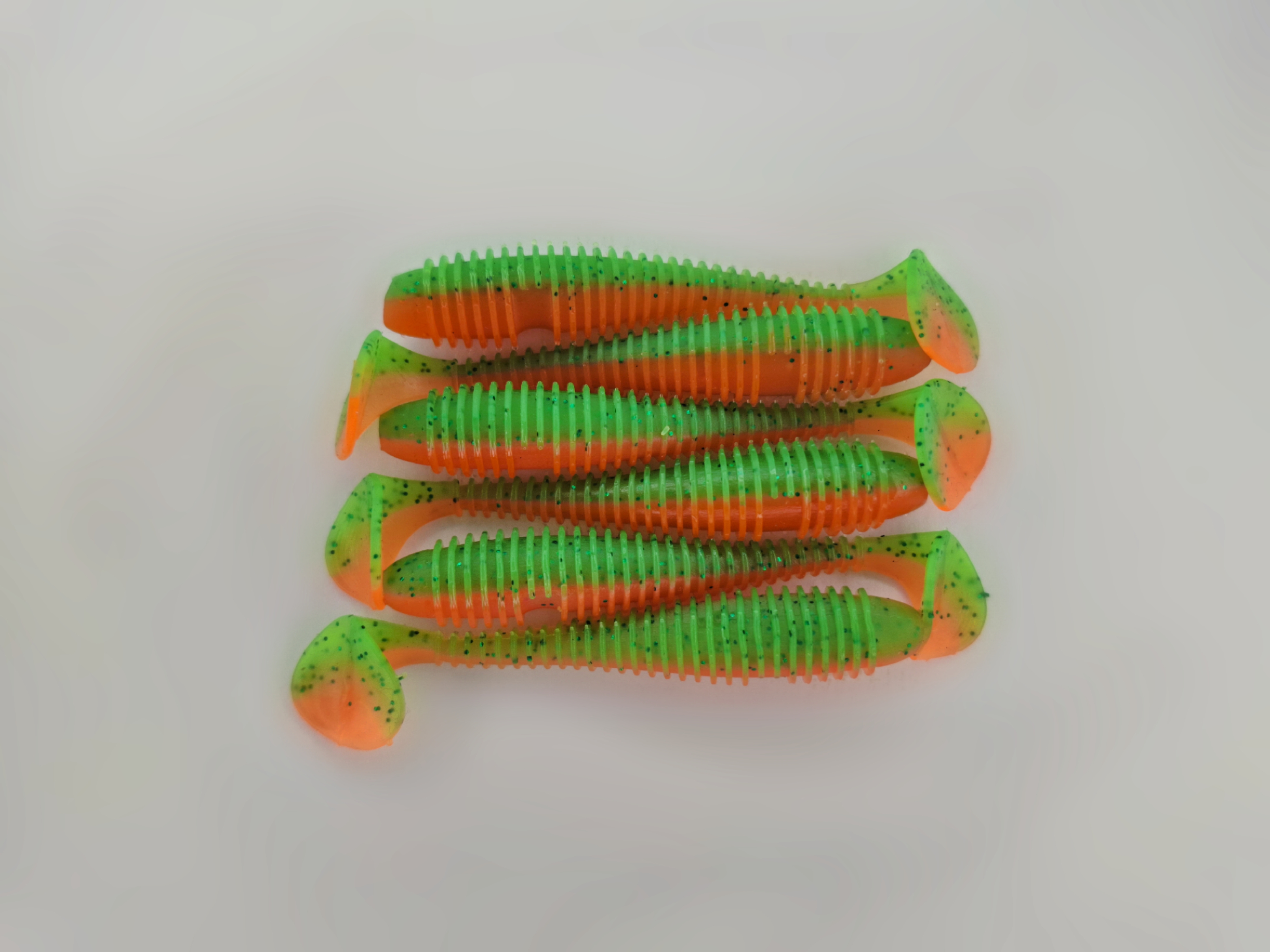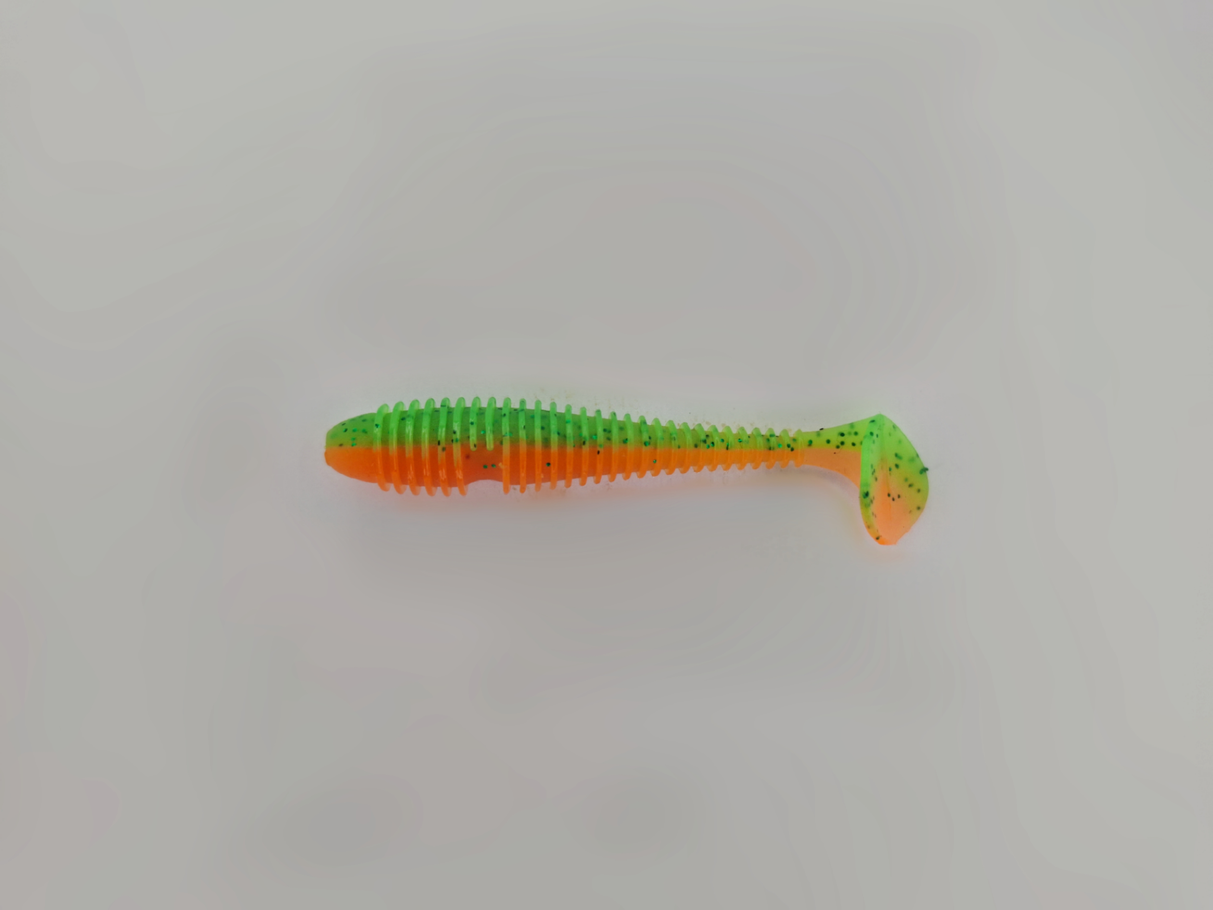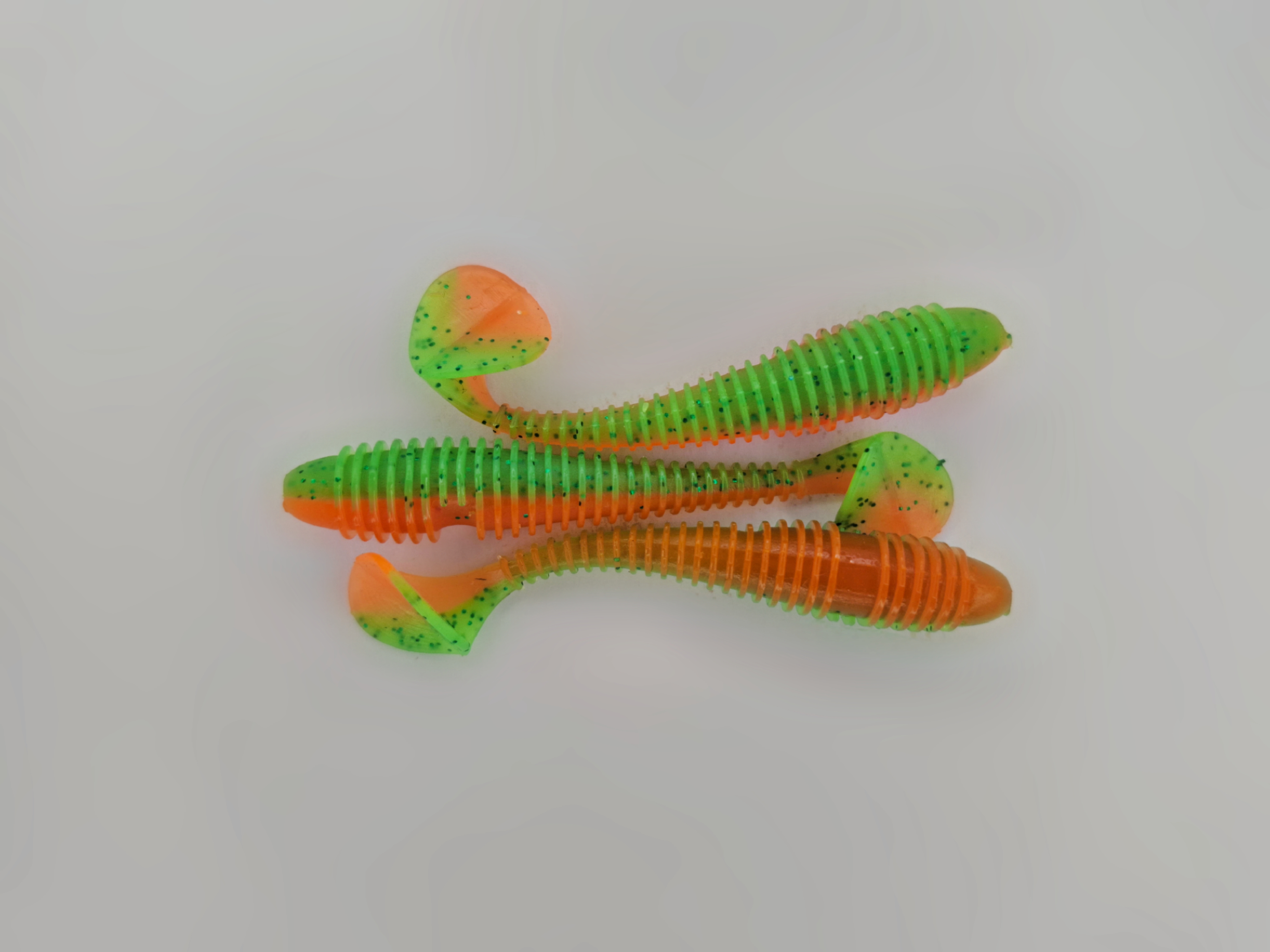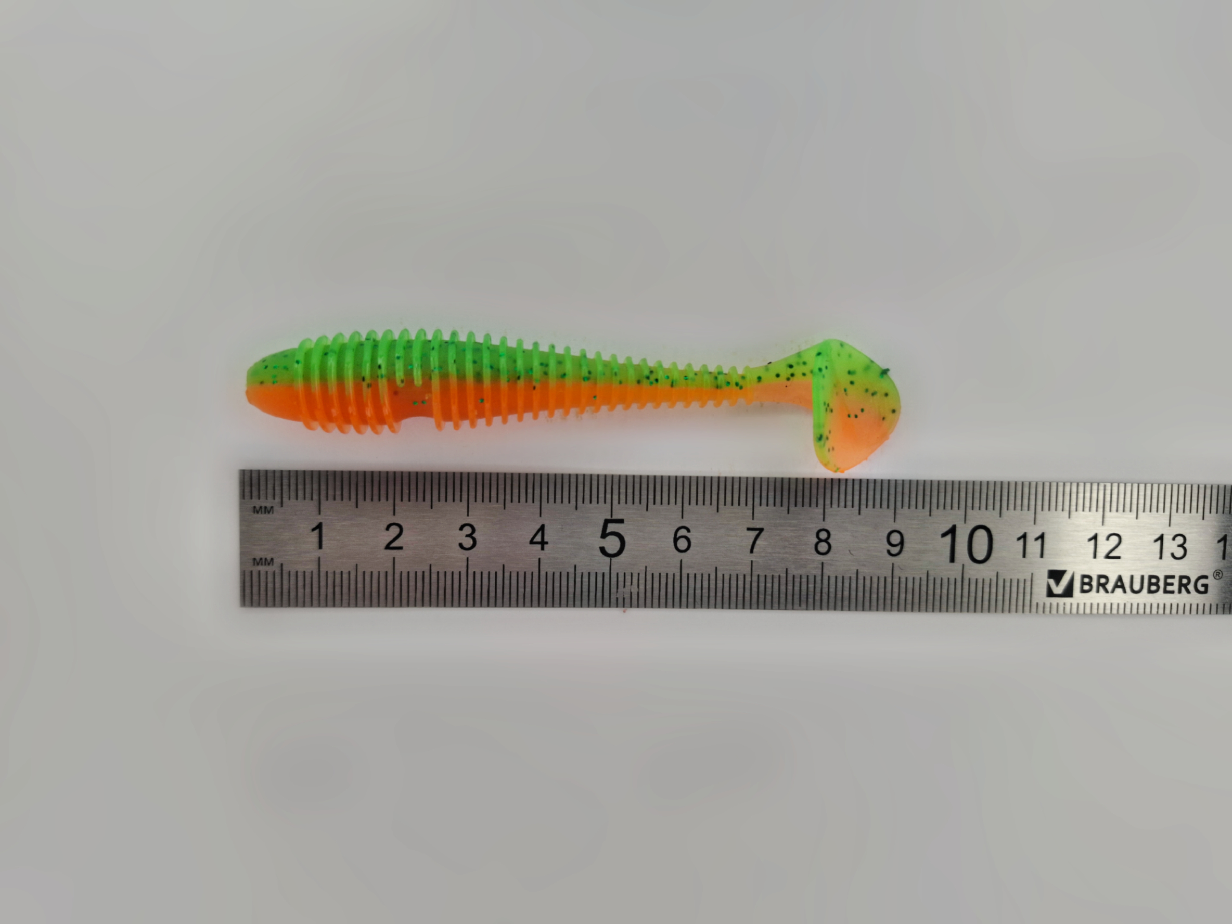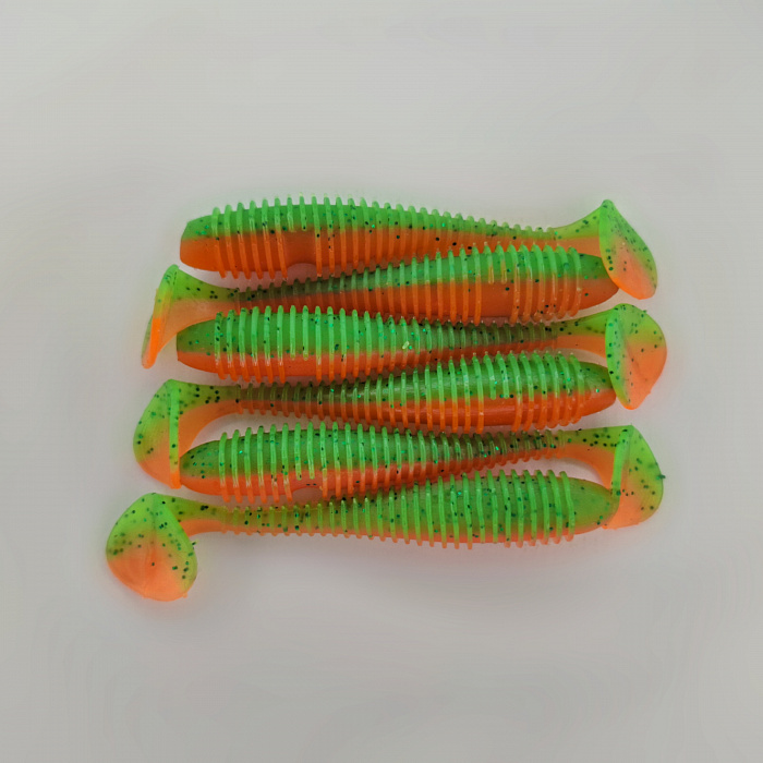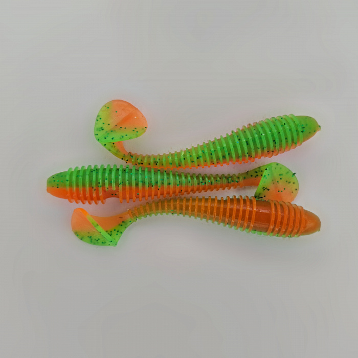 Уловистая силиконовая приманка "Стик минноу фэт" длиной 3.3 дюйма в яркой оранжево-зеленой расцветке – отличный выбор для охоты на хищную рыбу. Эта приманка ручной работы создана для результативной рыбалки.