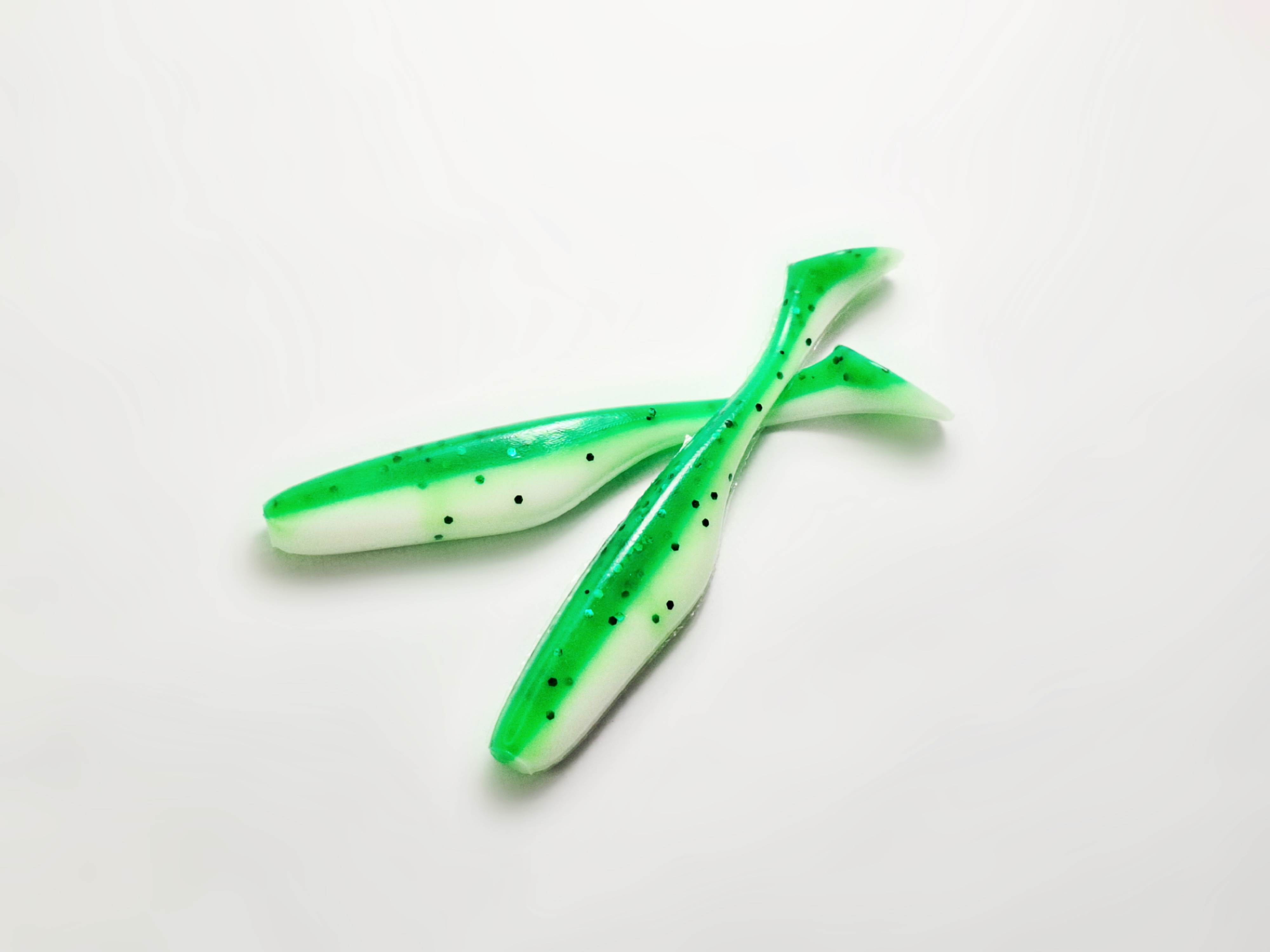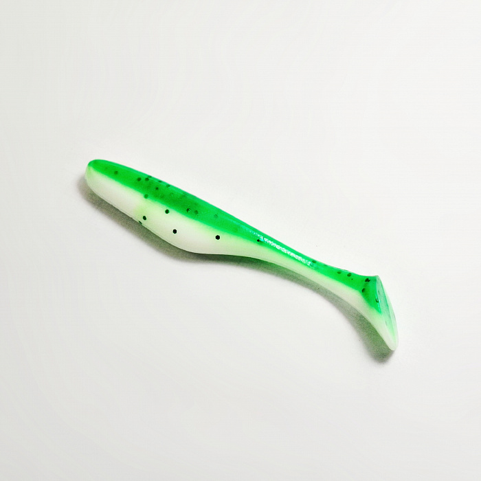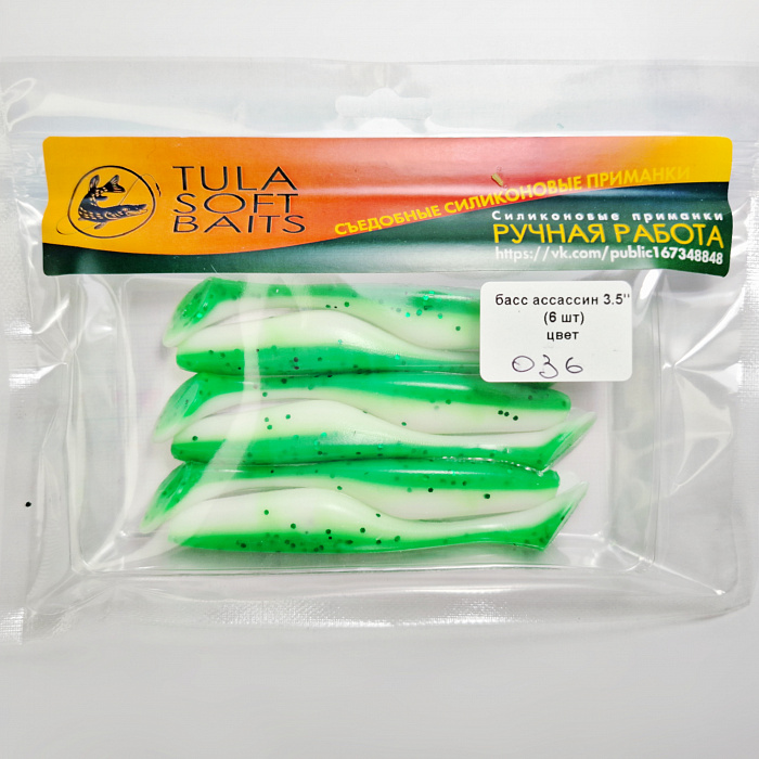 Благодаря бело-зеленому цвету, приманка хорошо заметна как в чистой, так и в мутной воде, что повышает шансы на успешную поклевку. Универсальный размер 3,5 дюйма позволяет использовать "Басс Ассасин" для различных техник ловли, будь то джиг, дроп-шот или отводной поводок.