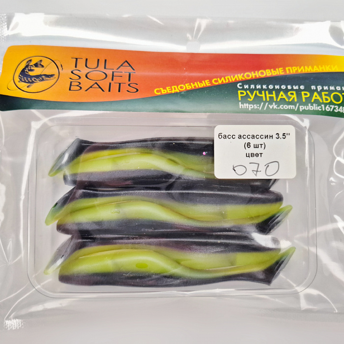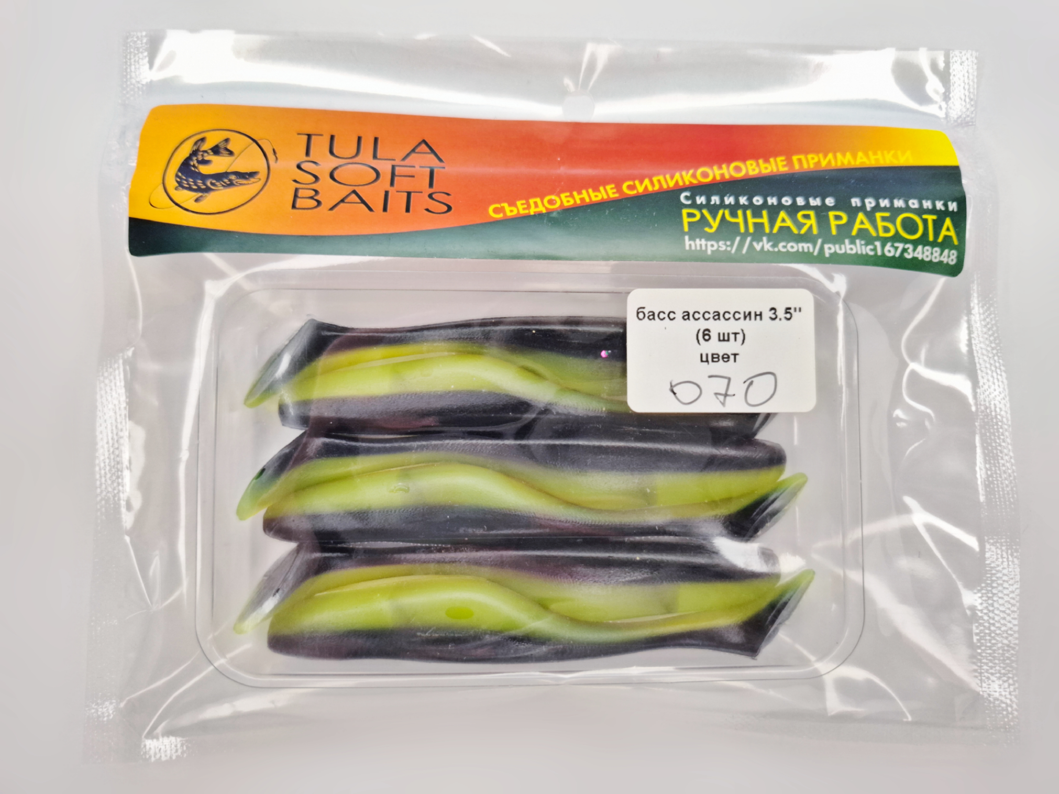 Силиконовая приманка размером 3,5 дюйма с черной спиной и желто-зеленым телом — отличный выбор для рыболовов, стремящихся к успешной ловле. Эта приманка является качественной репликой известной Bass Assasin и идеально подходит для ловли щуки, судака и окуня.