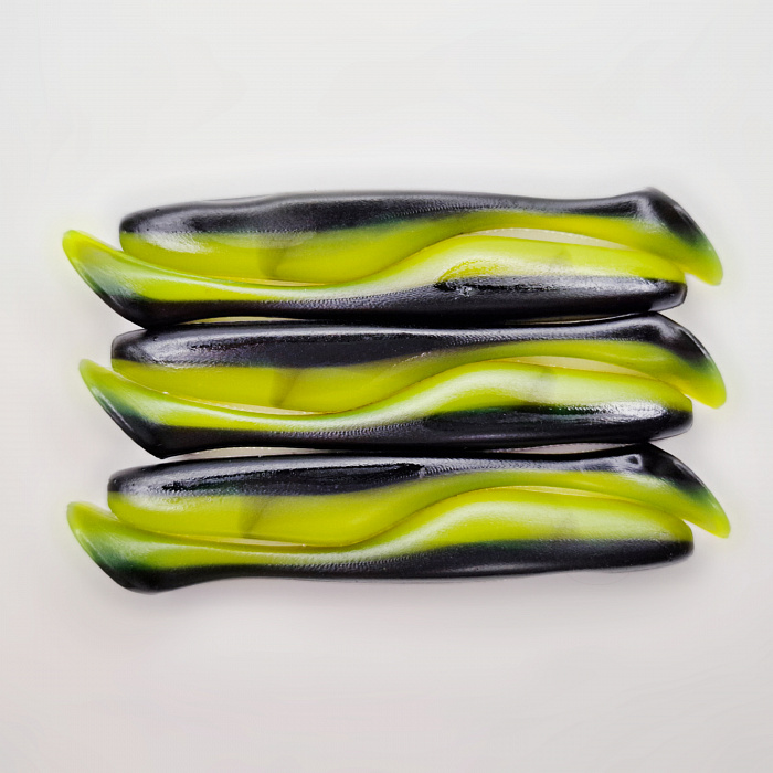 Изготовленная вручную, эта силиконовая приманка сочетает в себе привлекательный внешний вид и высокую эффективность. Яркие желто-зеленые оттенки в сочетании с черной спиной делают её заметной под водой, что привлекает внимание хищной рыбы. Гибкость и продуманная форма обеспечивают реалистичные движения, которые могут вызвать интерес даже у самой осторожной рыбы.