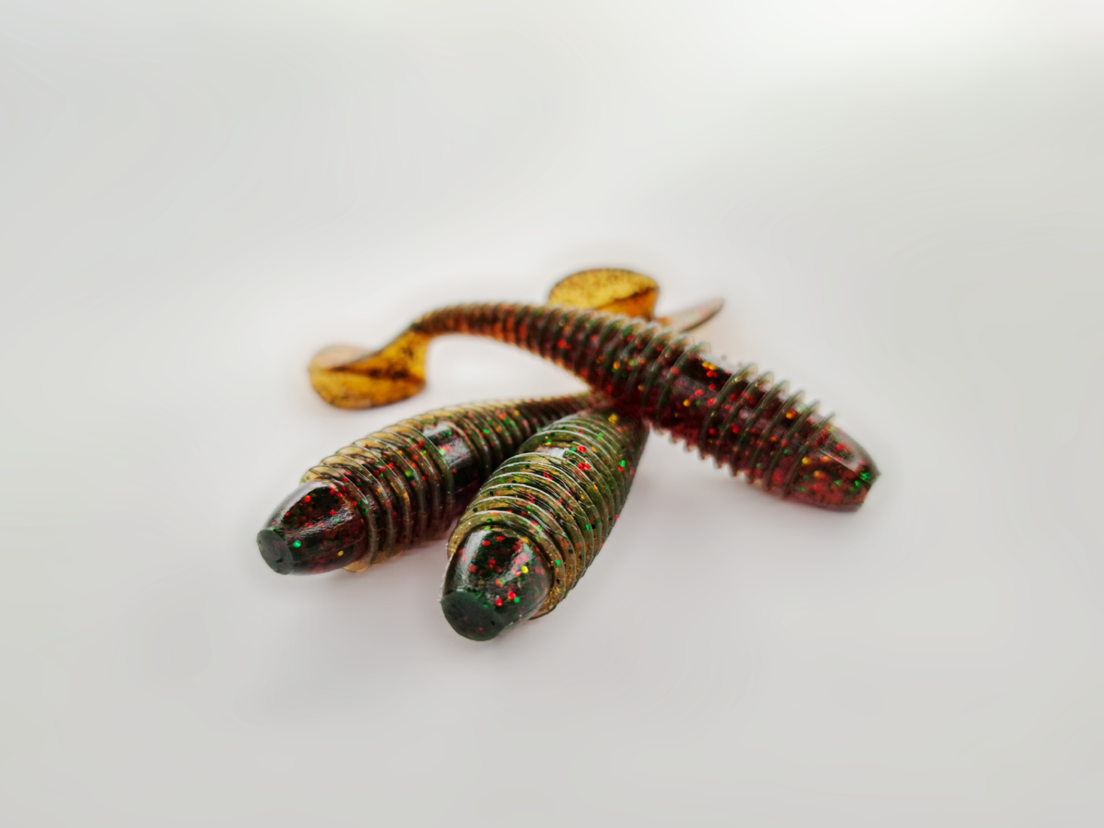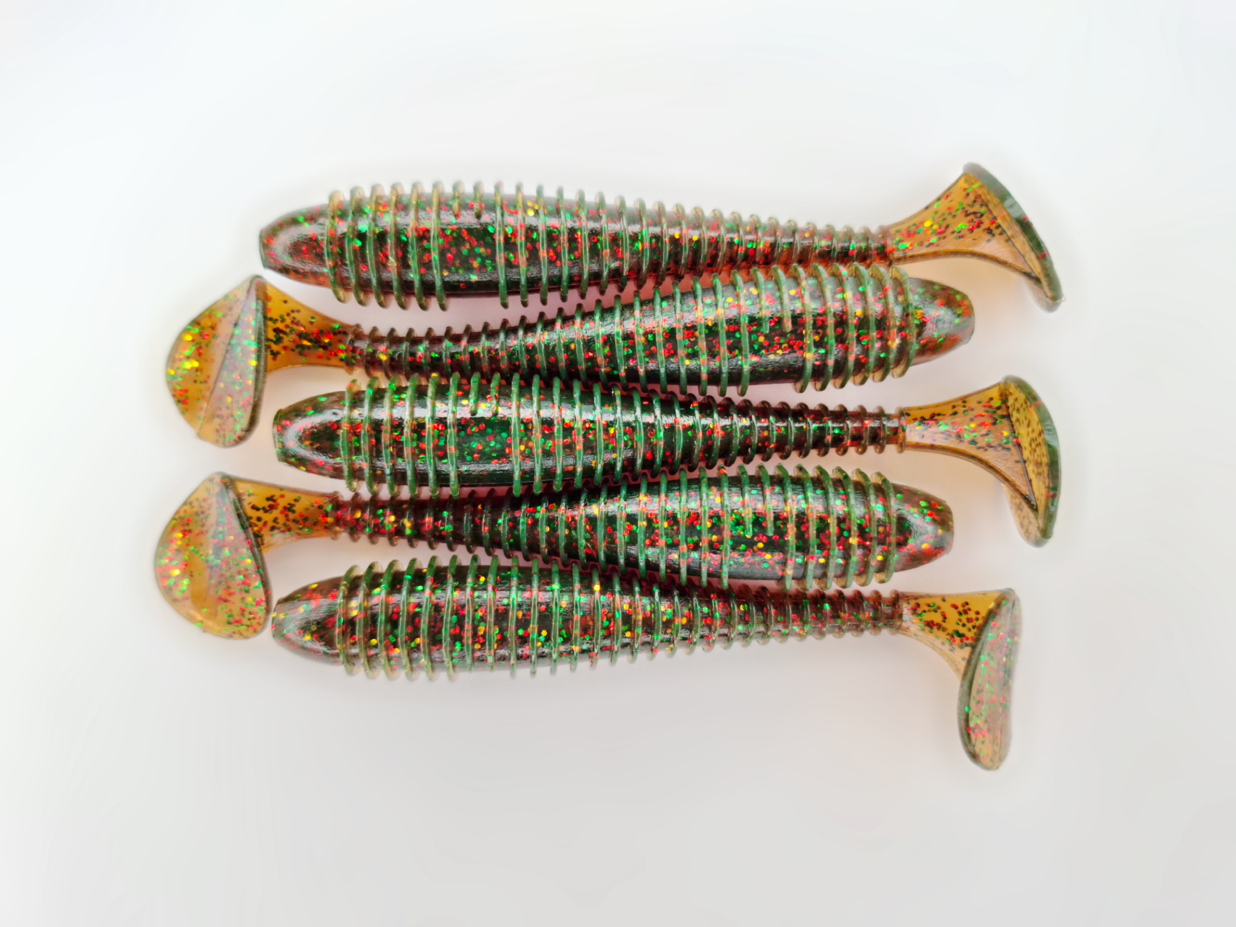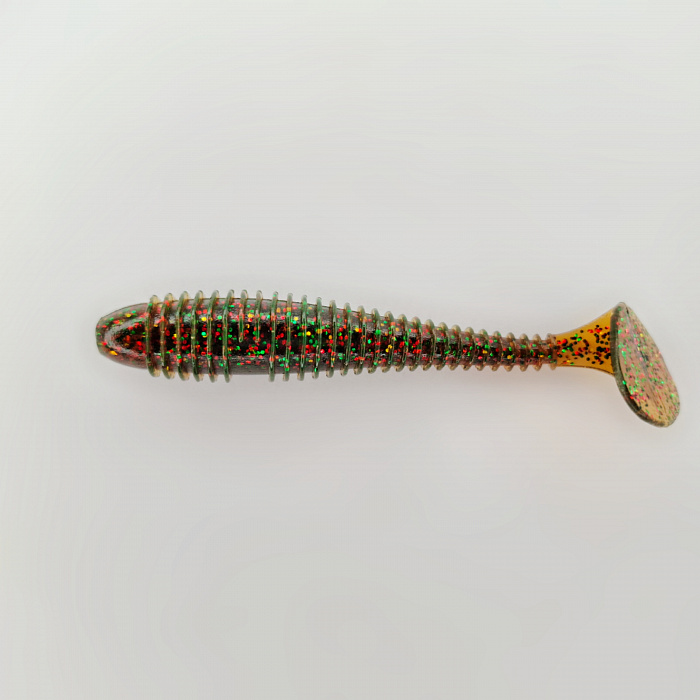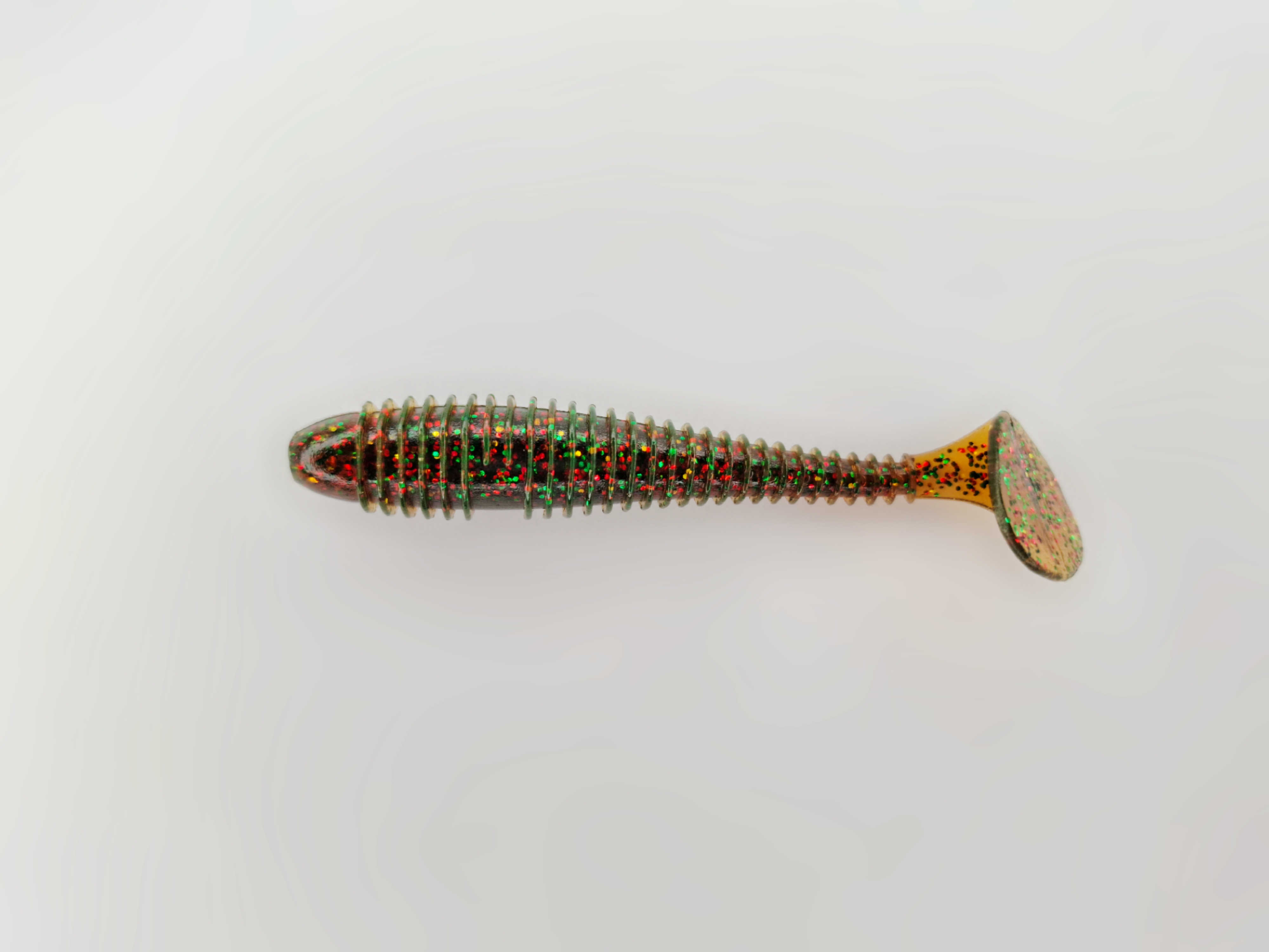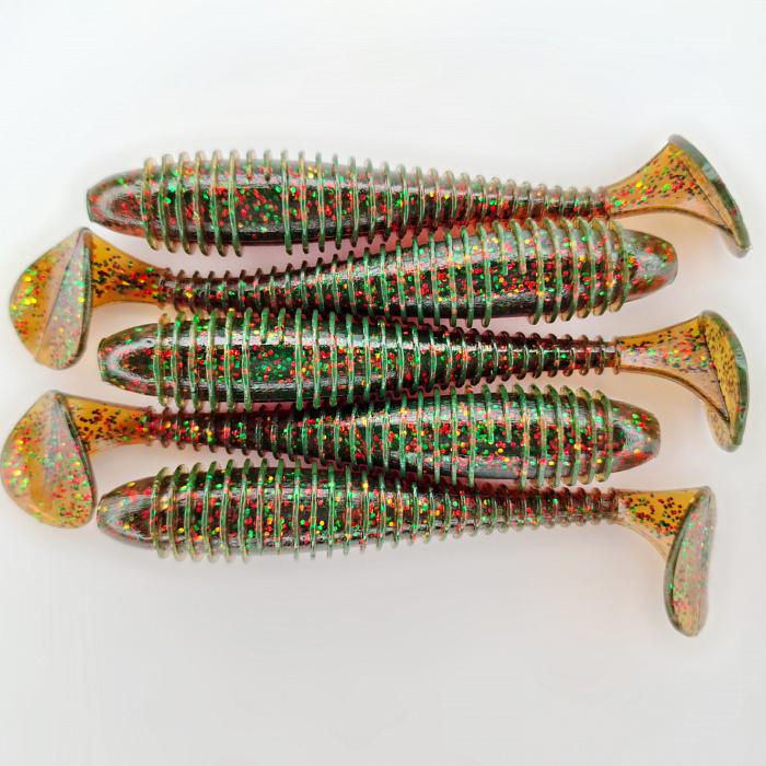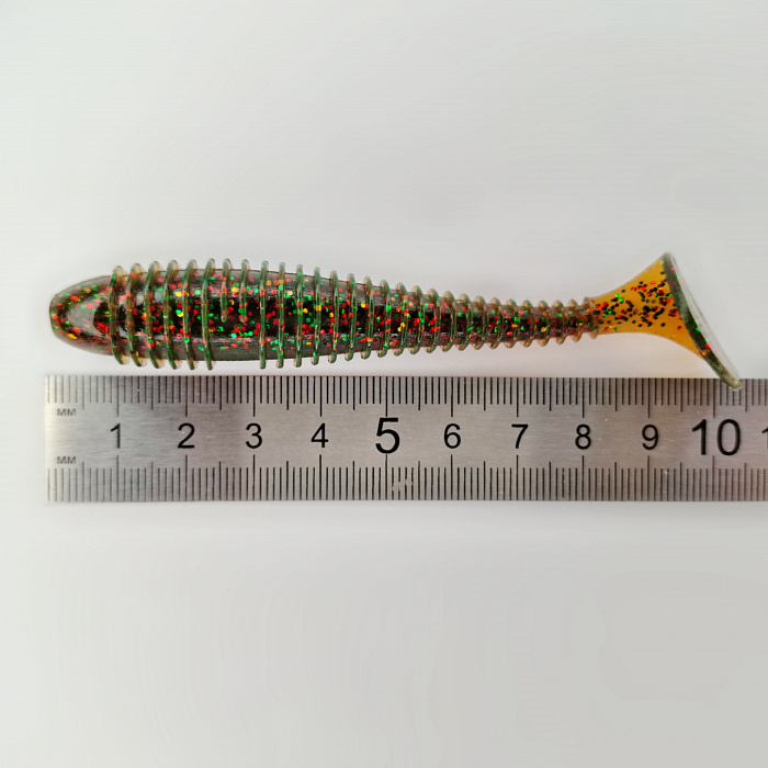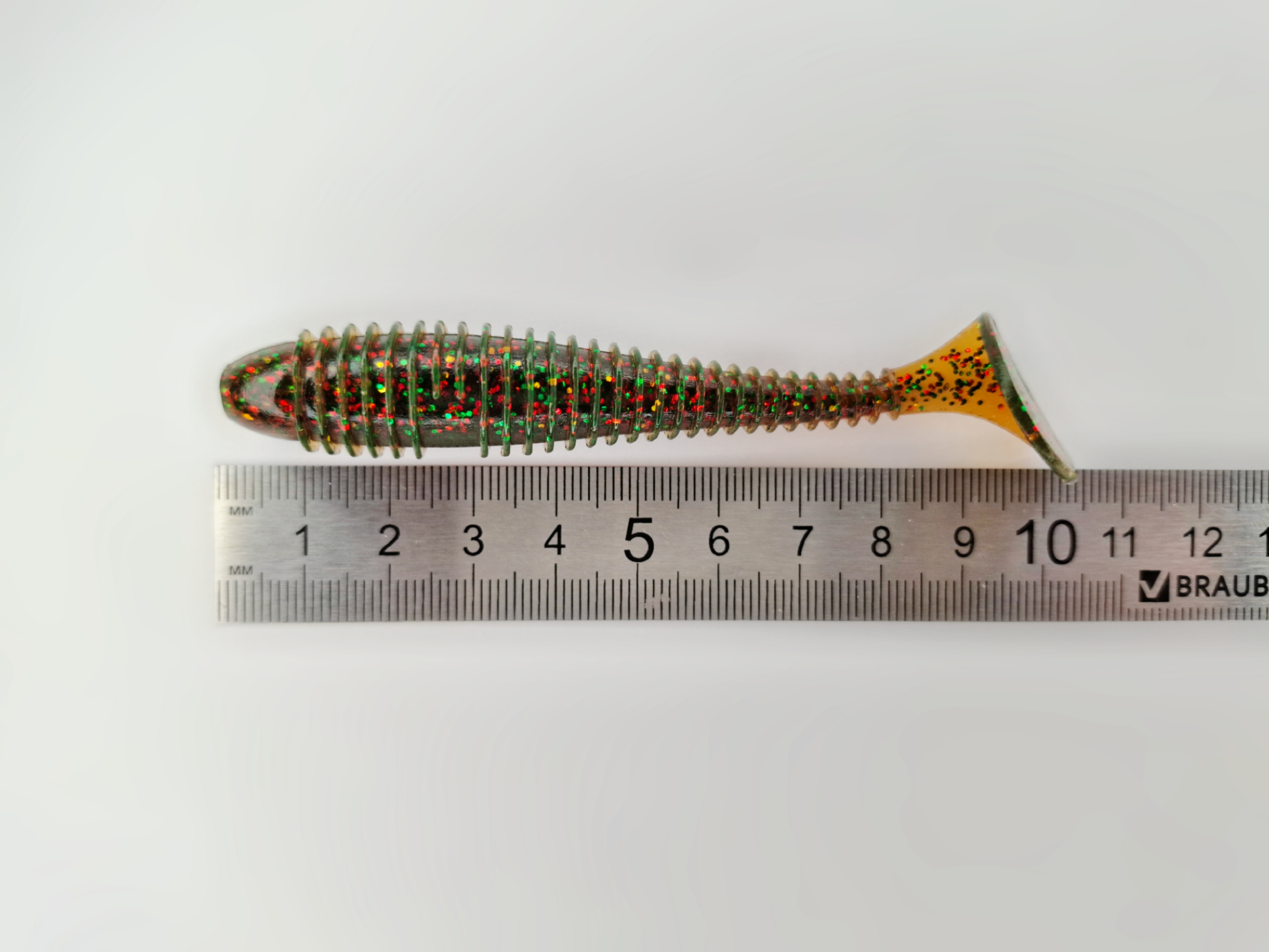 Размер в 3,8 дюйма делает ее универсальным вариантом для охоты на щуку, судака и окуня. Цвет "машинное масло" зарекомендовал себя как один из самых уловистых, особенно в условиях плохой видимости или в мутной воде.