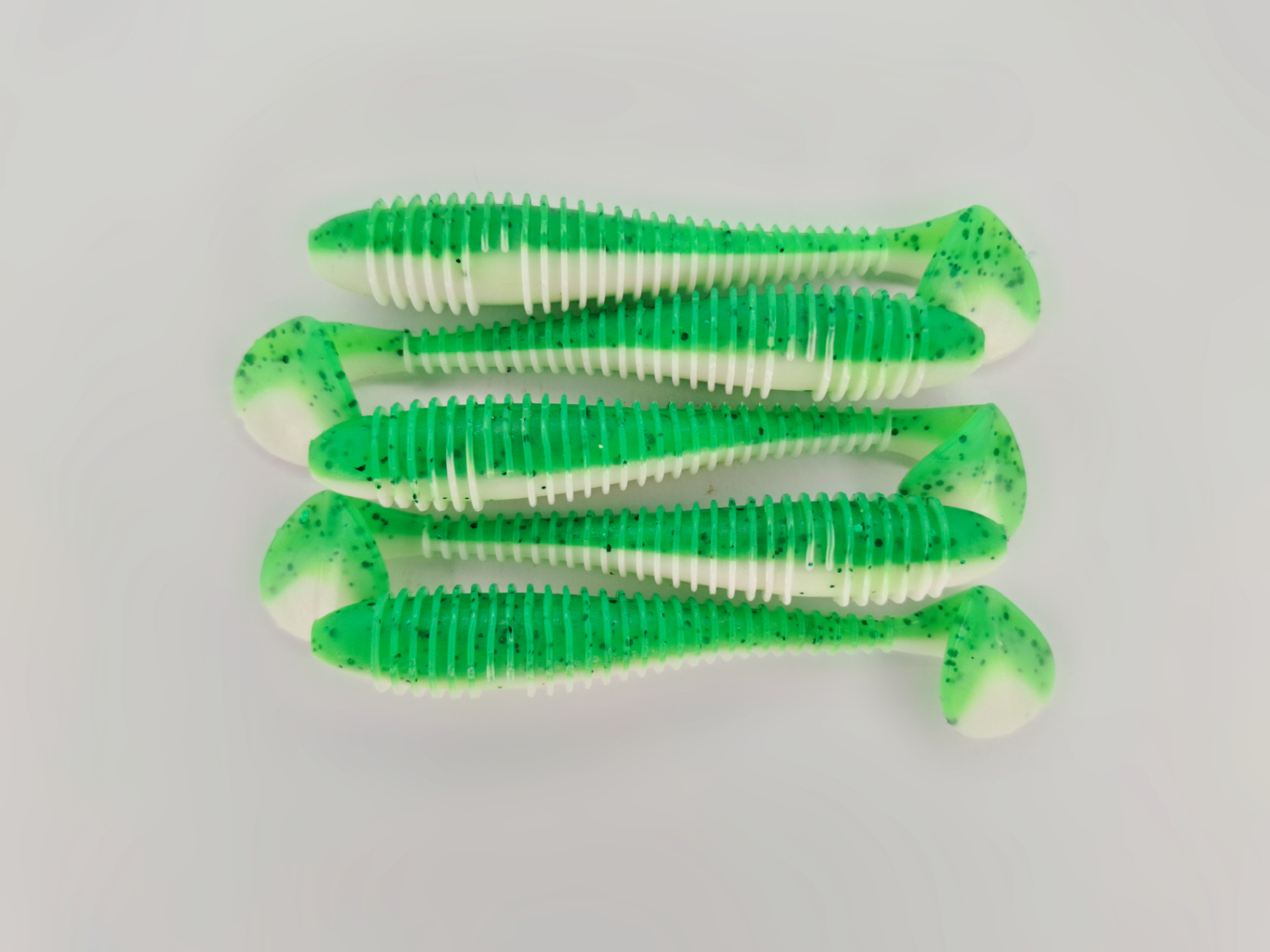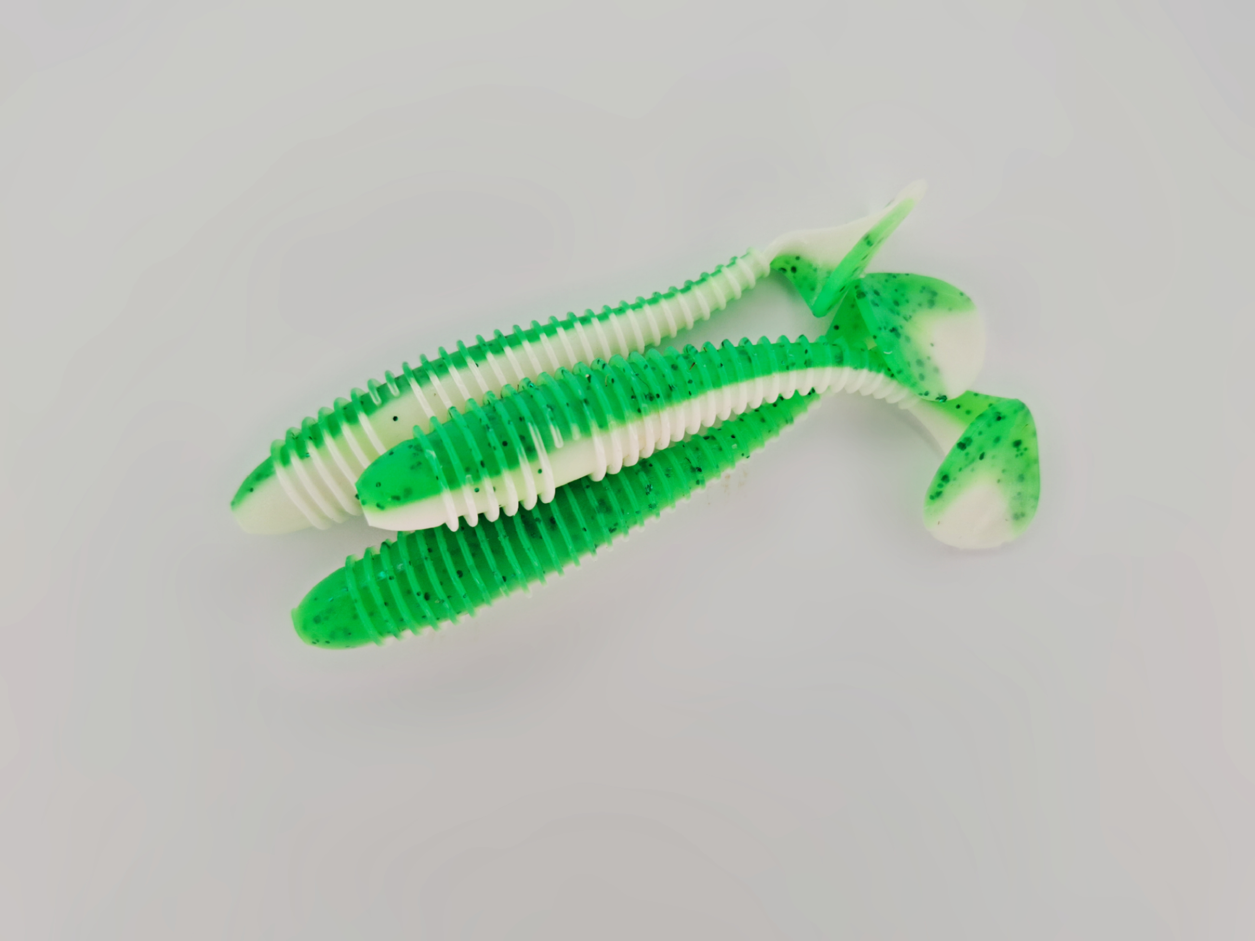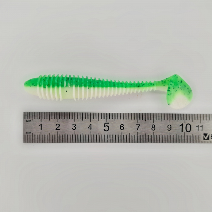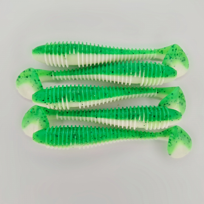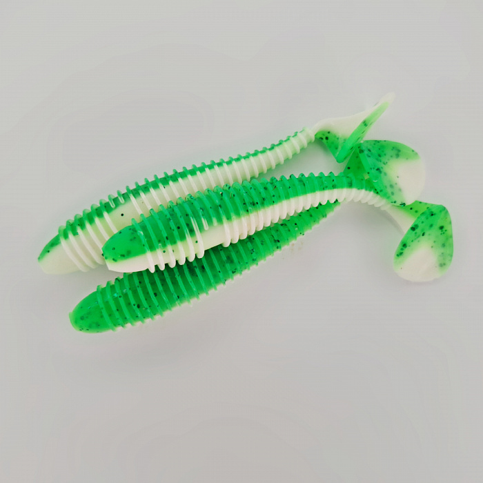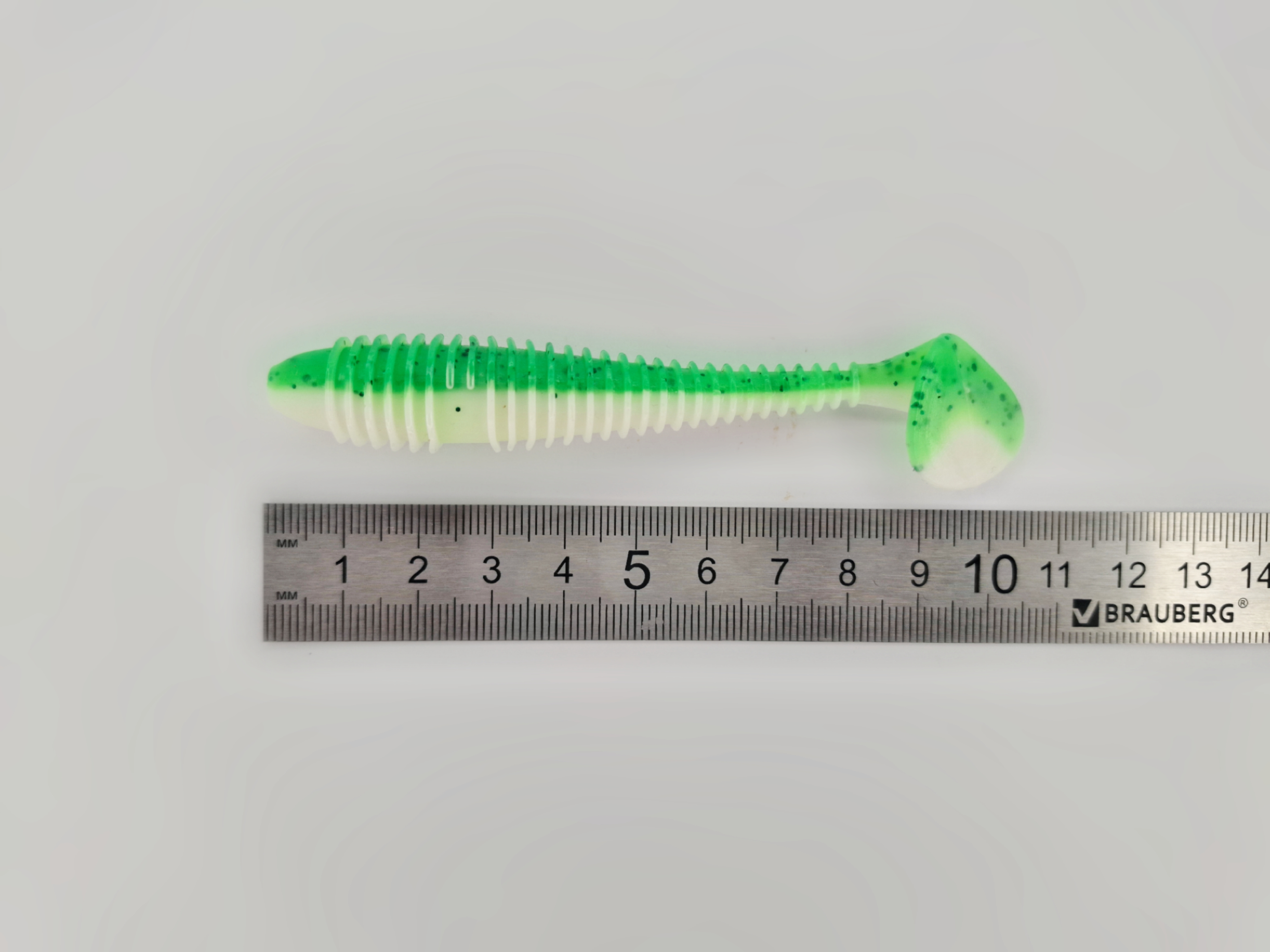 Уловистая приманка "Стик минноу фэт" длиной 3,8 дюйма в цвете "зеленый с белым" – идеальный выбор для охоты на хищника. Эта силиконовая приманка разработана для эффективной ловли щуки, судака и окуня в различных условиях.
