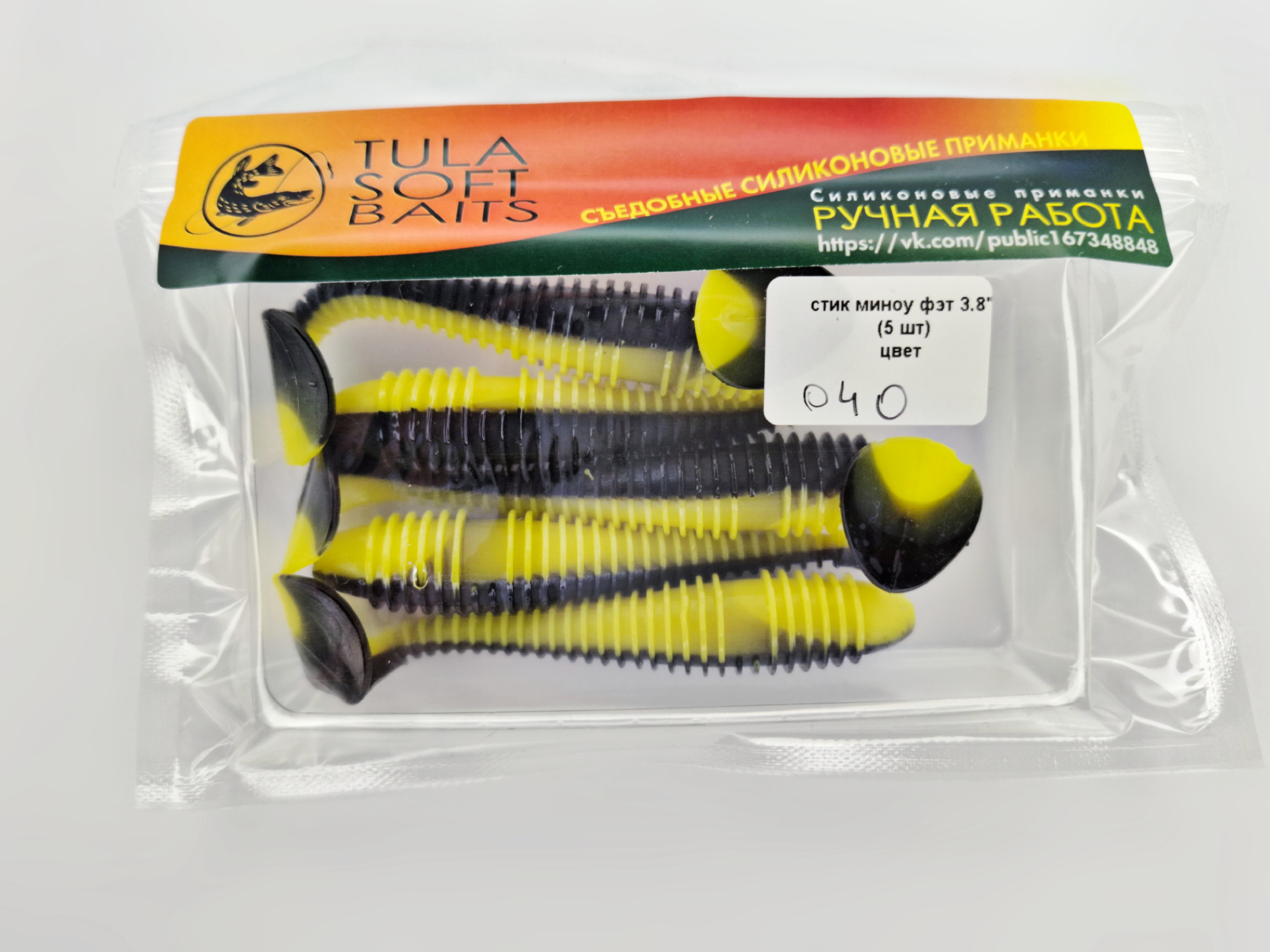 "Стик минноу фэт" – уловистая силиконовая приманка, разработанная для ловли хищной рыбы. Эта модель длиной 3,8 дюйма, выполненная в привлекательной черно-желтой расцветке, станет отличным дополнением к вашему рыболовному арсеналу.