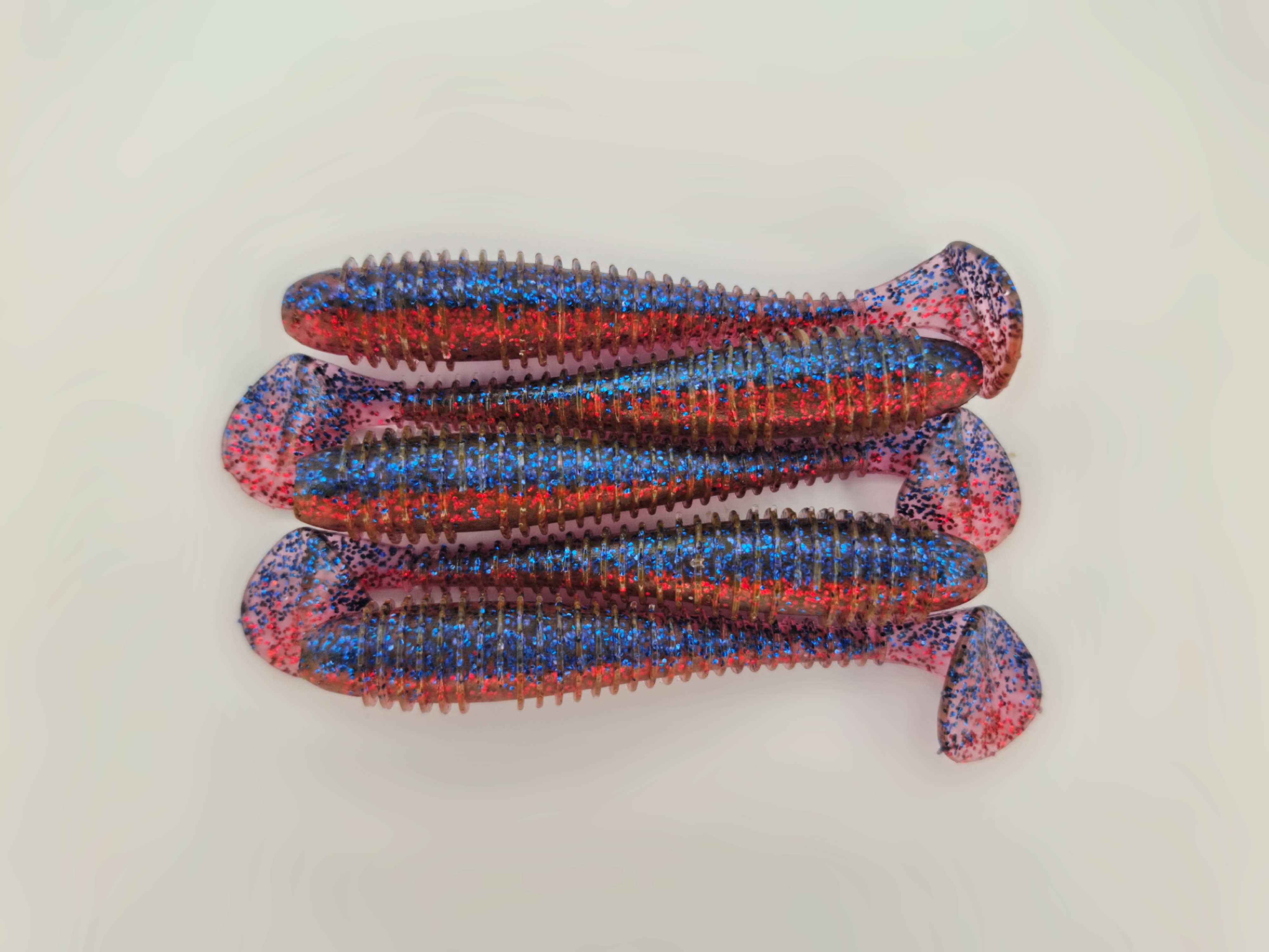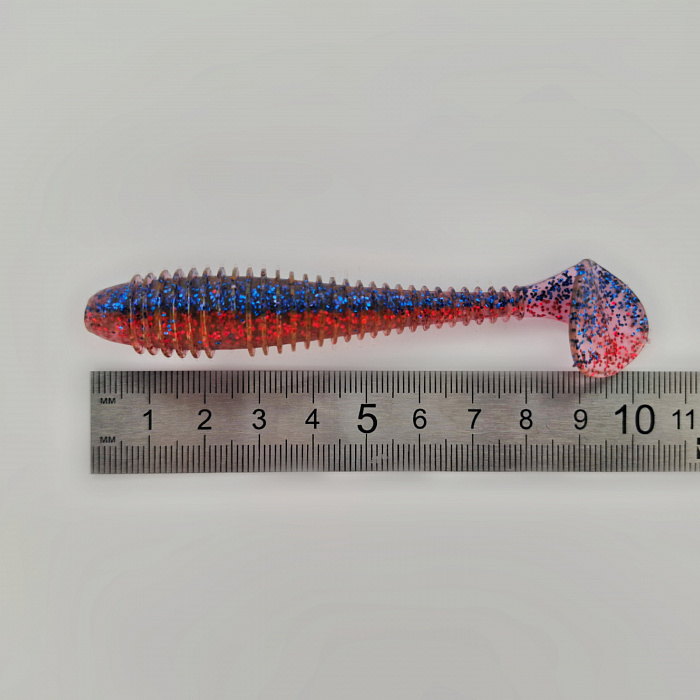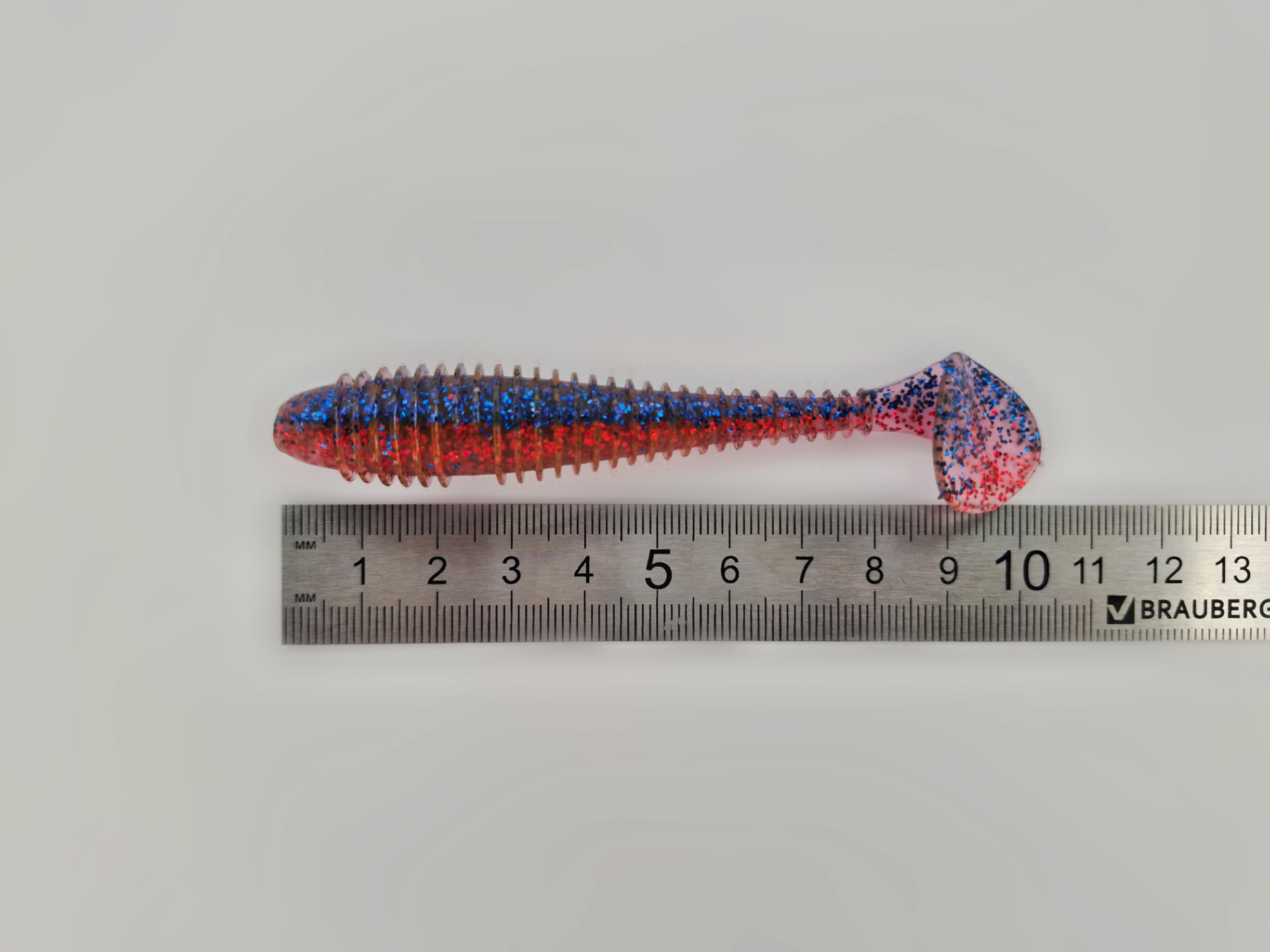 Силиконовая приманка "Стик минноу фэт" – уловистый инструмент для результативной рыбалки. Эта приманка, выполненная в размере 3,8 дюйма, идеально подходит для ловли хищной рыбы в различных условиях. Ее цвет – синий с красным и россыпью блесток – провоцирует на атаку даже пассивного хищника.