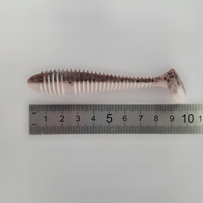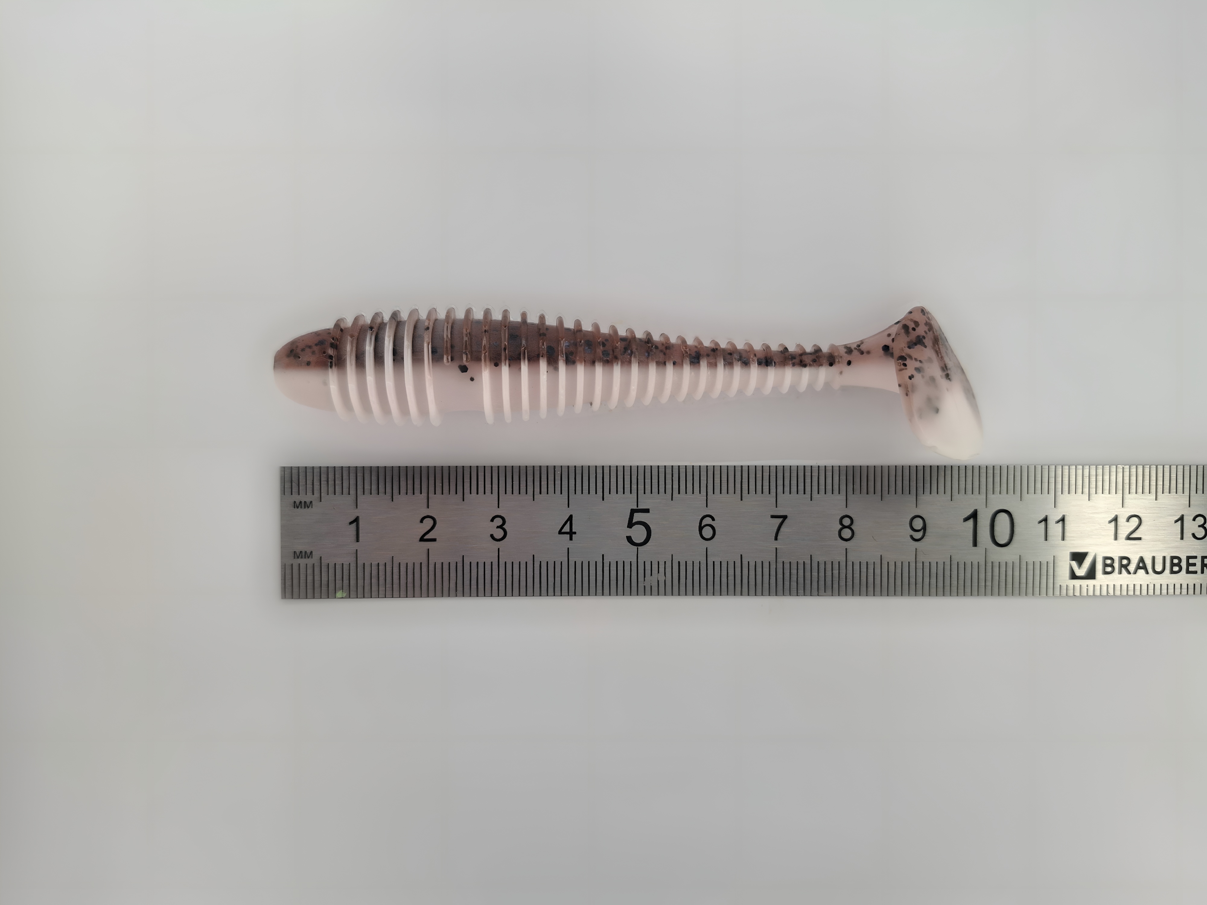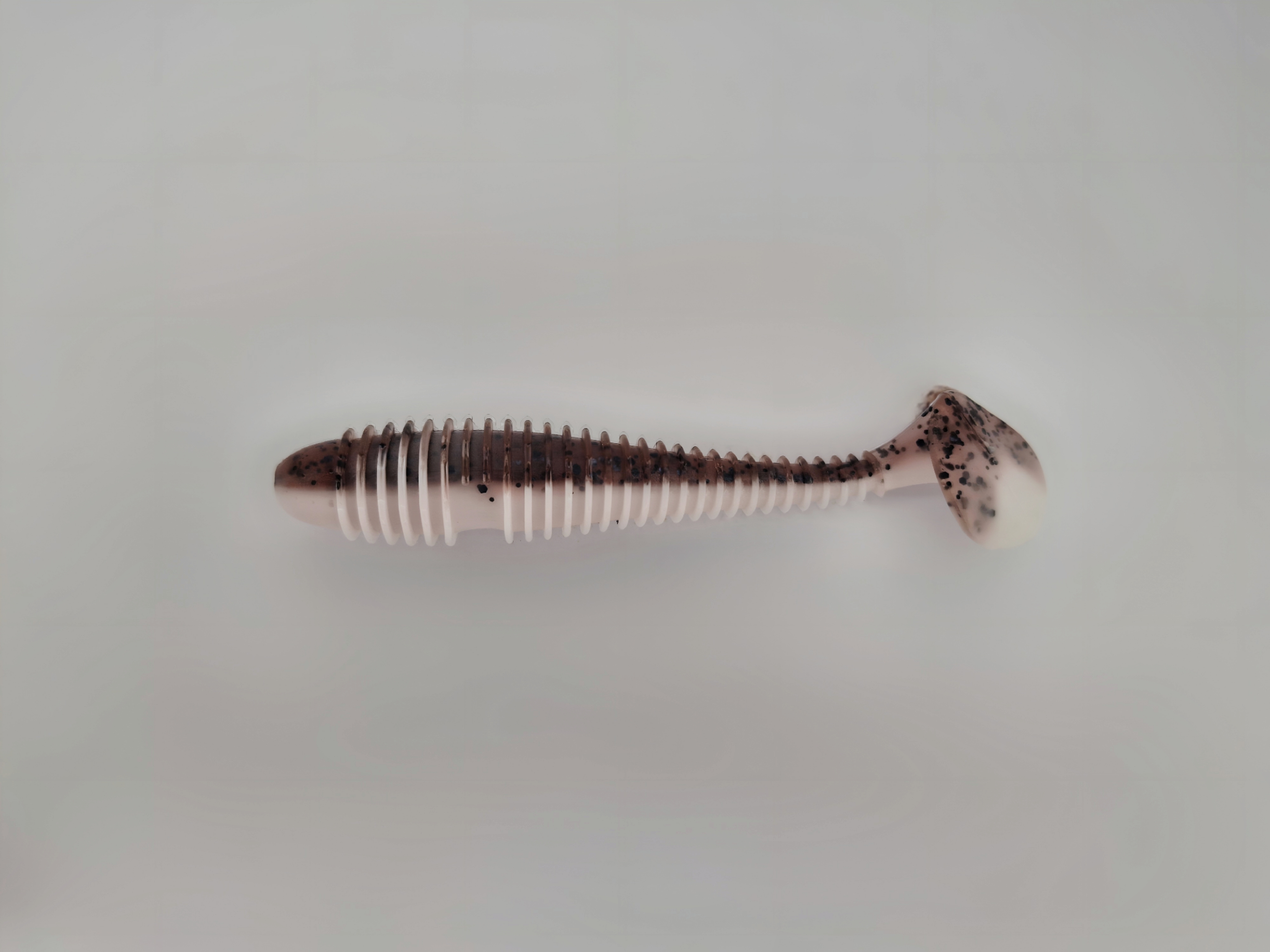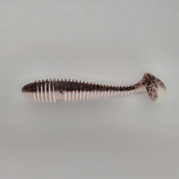 Выполненная в размере 3,8 дюйма, она привлекает внимание даже сытой рыбы. Коричневый с белым цвет, максимально приближенный к натуральным оттенкам, делает ее привлекательной в воде и провоцирует на атаку.
