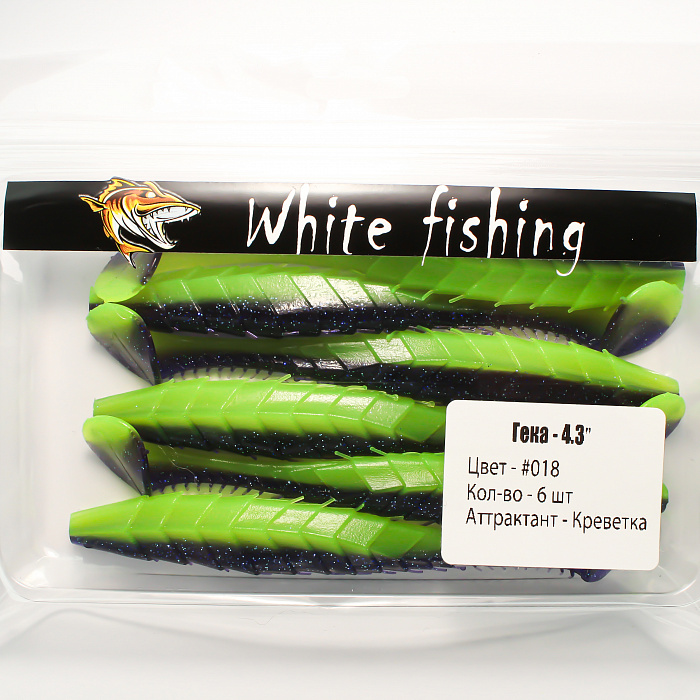 Силиконовые приманки Гека сине-зеленого цвета демонстрируют высокие показатели эффективности при ловле хищной рыбы. Размер приманки 4,3 дюйма оптимален для охоты на щуку и судака. Ультрамягкий силикон обладает отличной игрой в воде, что вызывает у рыбы непреодолимое желание атаковать.