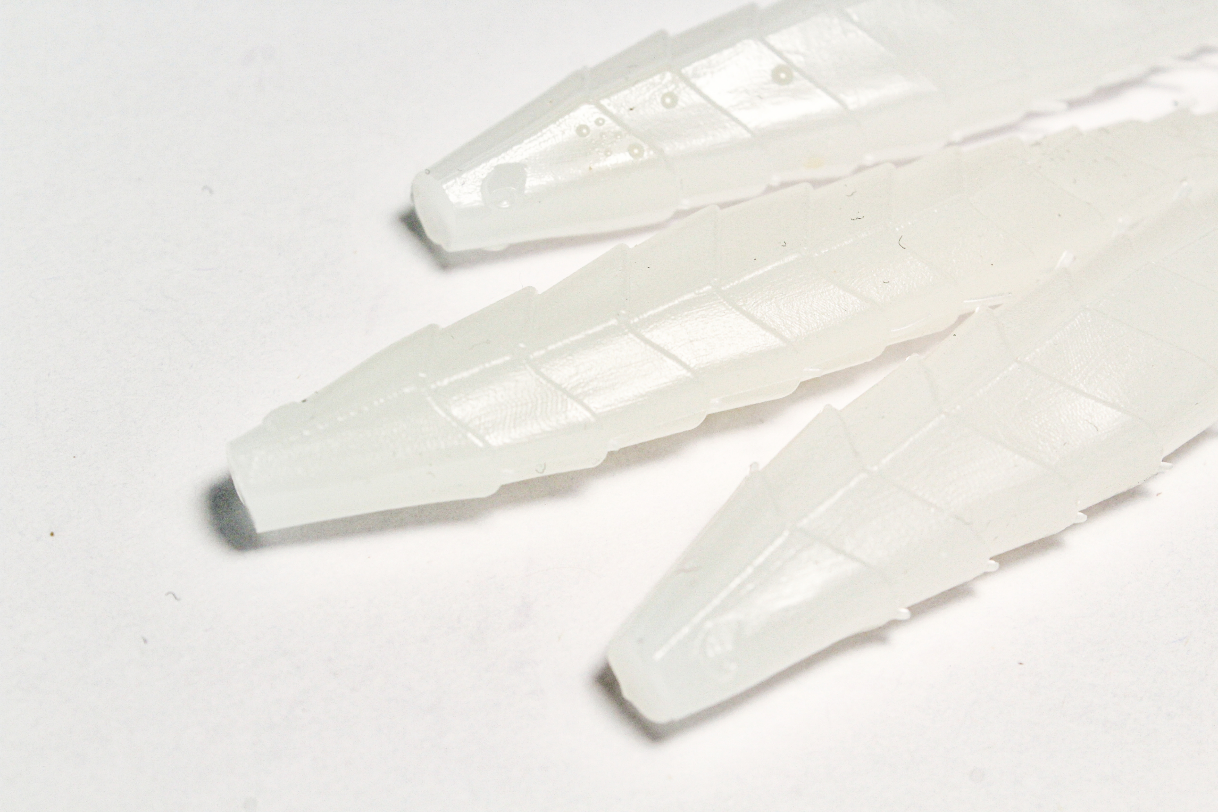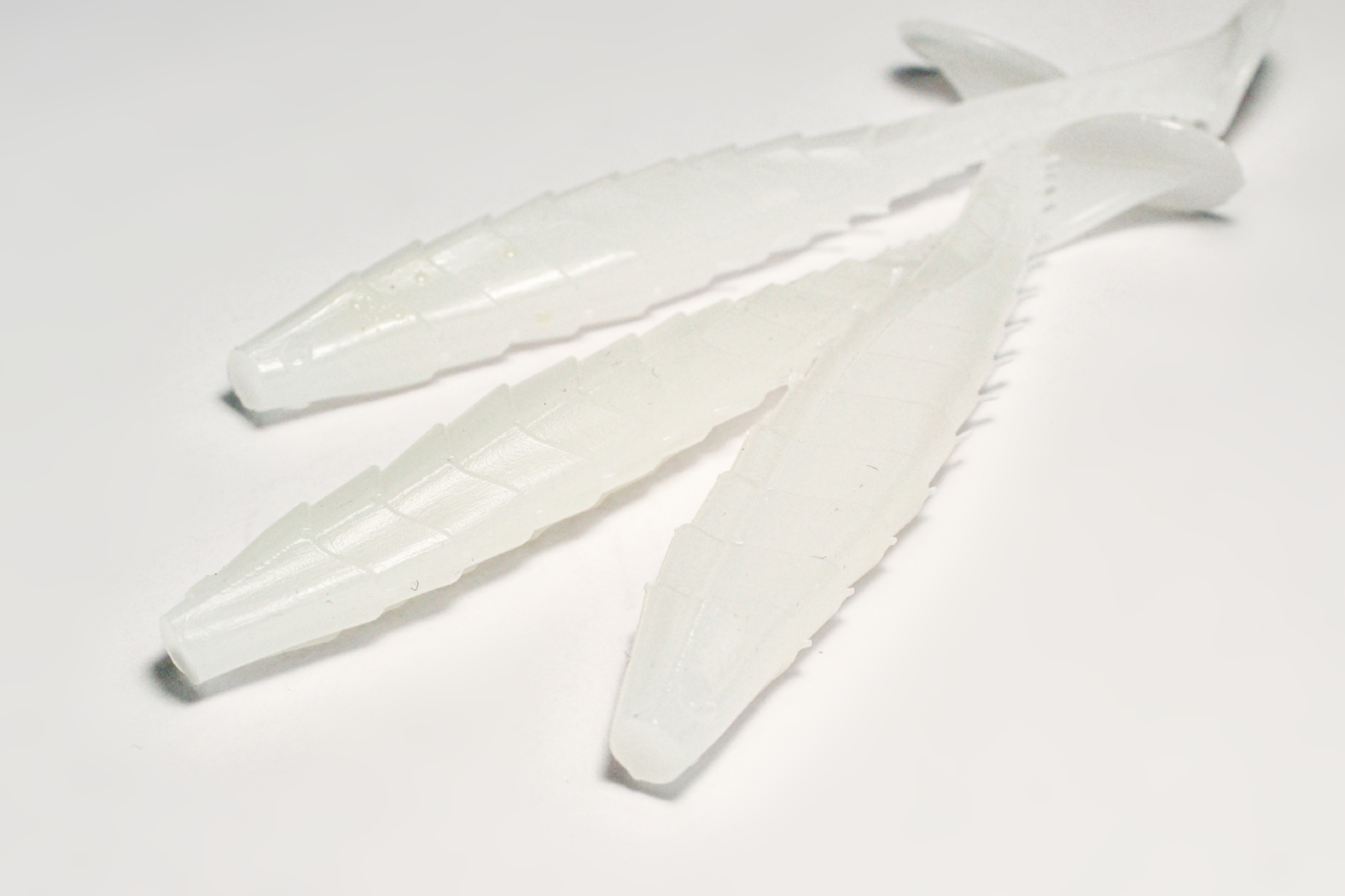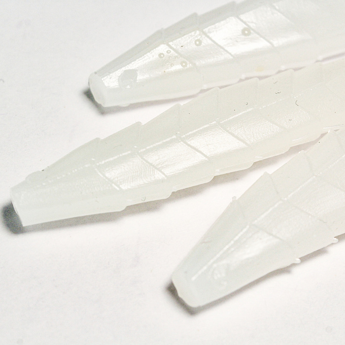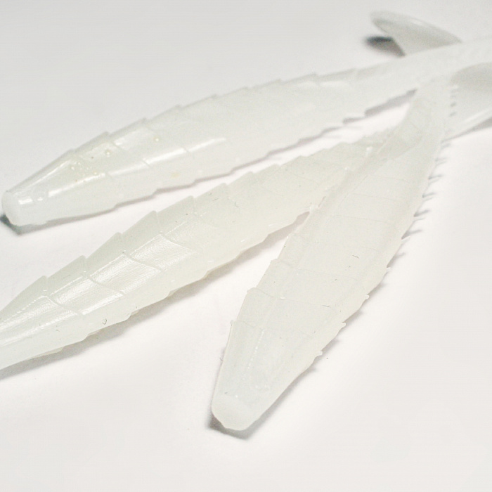 Изделия выполнены из экологически чистого силикона, устойчивого к истиранию и разрывам. Белый цвет приманки особенно эффективен в условиях хорошей освещённости и чистой воды, привлекая внимание рыбы издалека. Широкий спектр оттенков белого цвета усиливает визуальное восприятие приманки, создавая ощущение натуральной добычи.