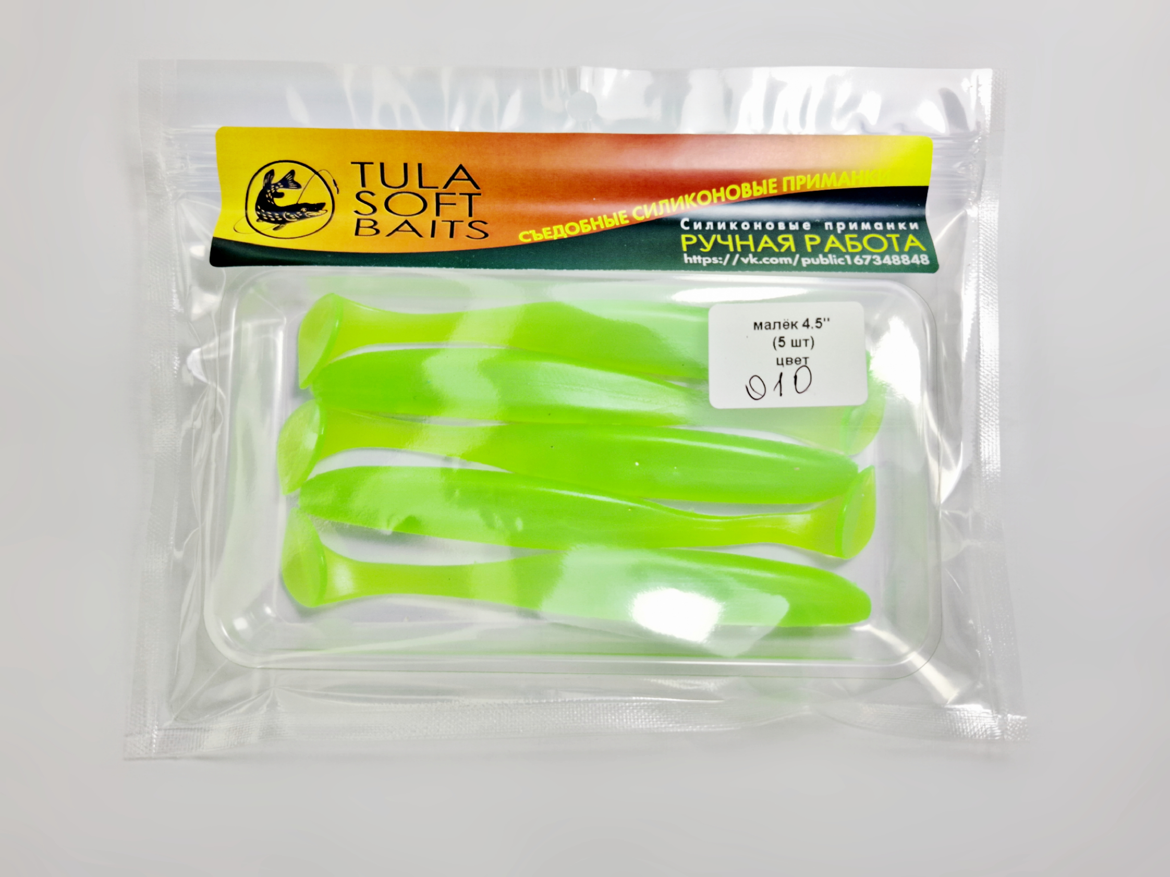 Универсальный размер 4,5 дюйма позволяет использовать "Малька" для ловли как щуки, так и судака. Геометрия тела и хвостовая часть приманки создают активную игру в воде, имитируя движения живой рыбки, что провоцирует хищника на атаку.