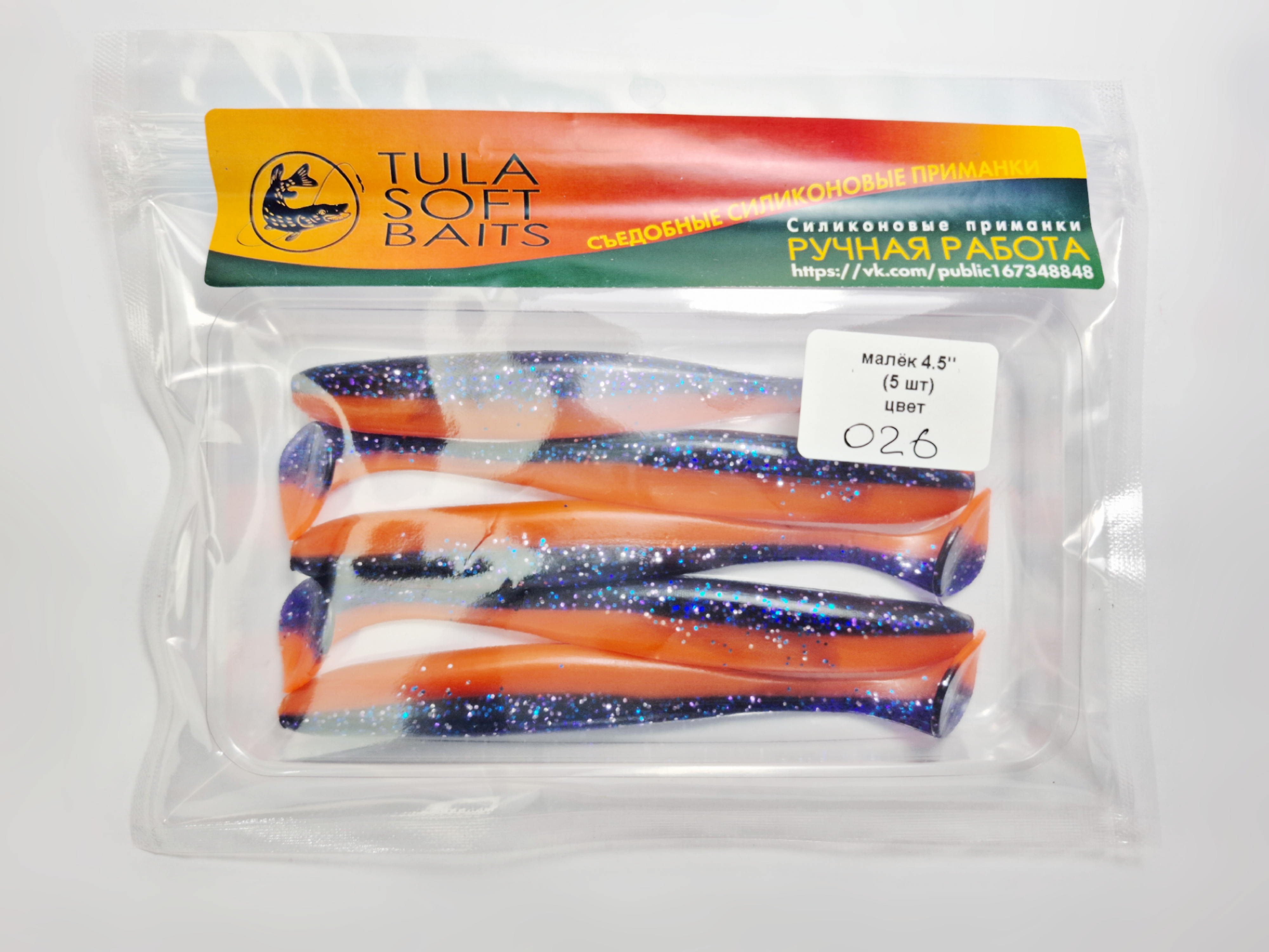 Силиконовые приманки "Малёк" – это выбор опытных рыболовов, стремящихся к впечатляющим результатам. Модель длиной 4,5 дюйма в яркой фиолетово-оранжевой расцветке идеально имитирует живую рыбку, привлекая внимание даже самых осторожных хищников. Этот цвет особенно эффективен в мутной воде и в условиях ограниченной видимости, когда другие приманки оказываются бессильны.