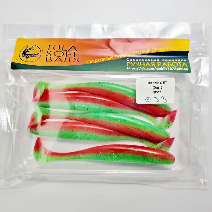 "Малёк" в цвете "арбуз" – это силиконовая приманка длиной 4,5 дюйма, разработанная для успешной ловли хищной рыбы в различных условиях. Яркая, провоцирующая расцветка, сочетающая красный и зеленый оттенки, делает её заметной даже в мутной воде, привлекая внимание щуки и судака с большого расстояния.