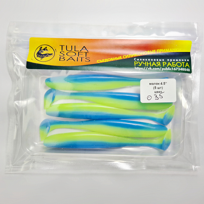 Силиконовые приманки "Малёк" - идеальный выбор для рыболовов, стремящихся к успешной ловле щуки и судака. Эти реалистичные приманки, выполненные из высококачественного силикона, обладают длиной 4,5 дюйма и привлекательной желто-голубой расцветкой, которая провоцирует хищника на атаку.