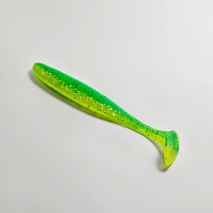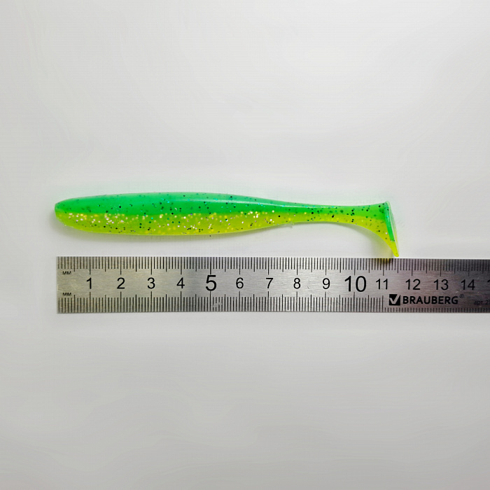 Силиконовый материал, из которого изготовлена приманка, обеспечивает ей реалистичную игру в воде, имитируя движения живой рыбки. Блестки, добавленные в силикон, отражают свет и дополнительно привлекают внимание хищника, особенно в мутной воде или в условиях недостаточной освещенности.
