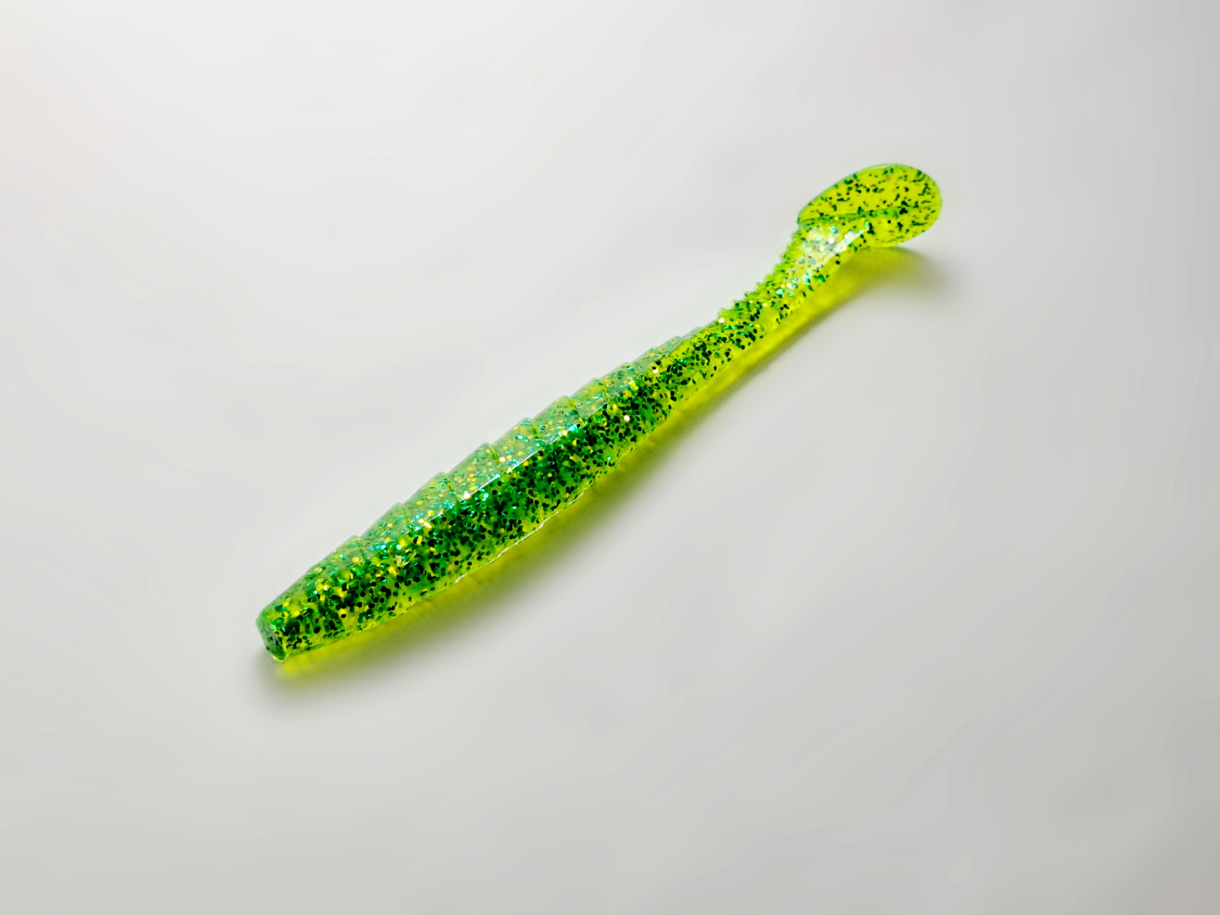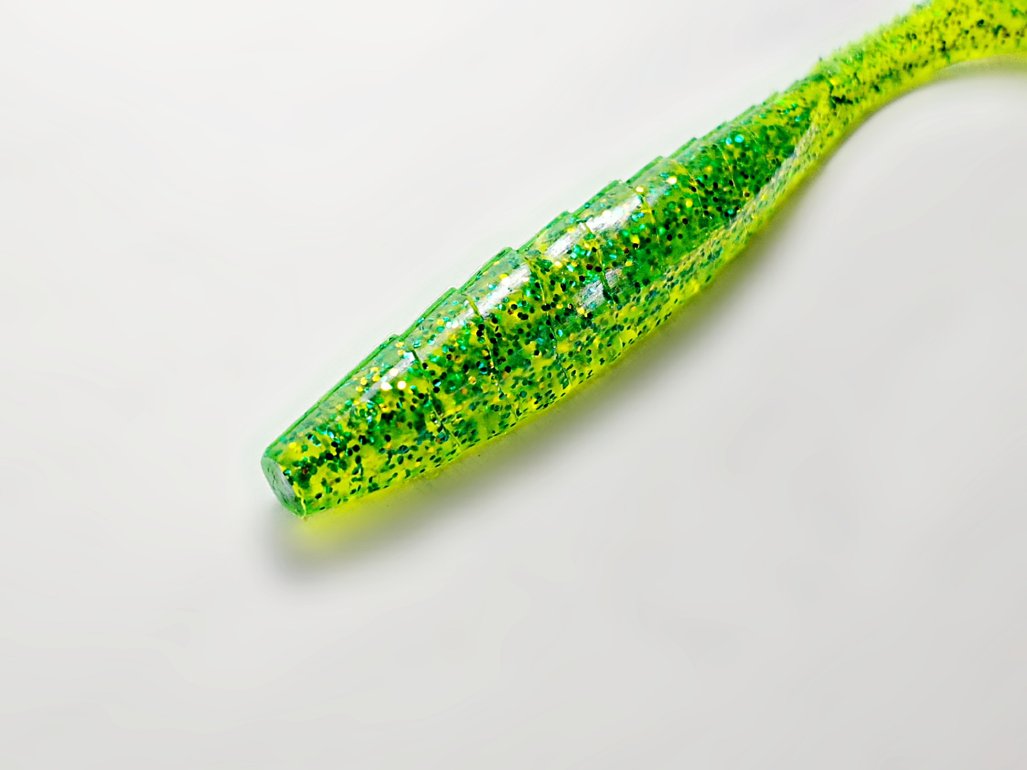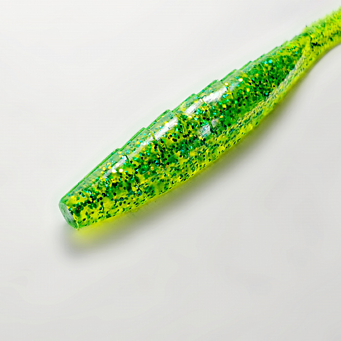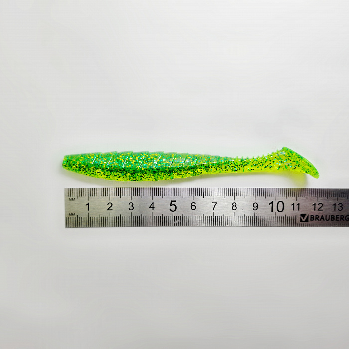Уникальная форма тела приманки и ребристая структура создают мощные колебания в воде, которые привлекают внимание хищника с большого расстояния. Активная игра хвоста добавляет реалистичности и провоцирует рыбу на атаку. Специально разработанный состав силикона обеспечивает приманке мягкость и эластичность, что положительно сказывается на количестве поклевок.