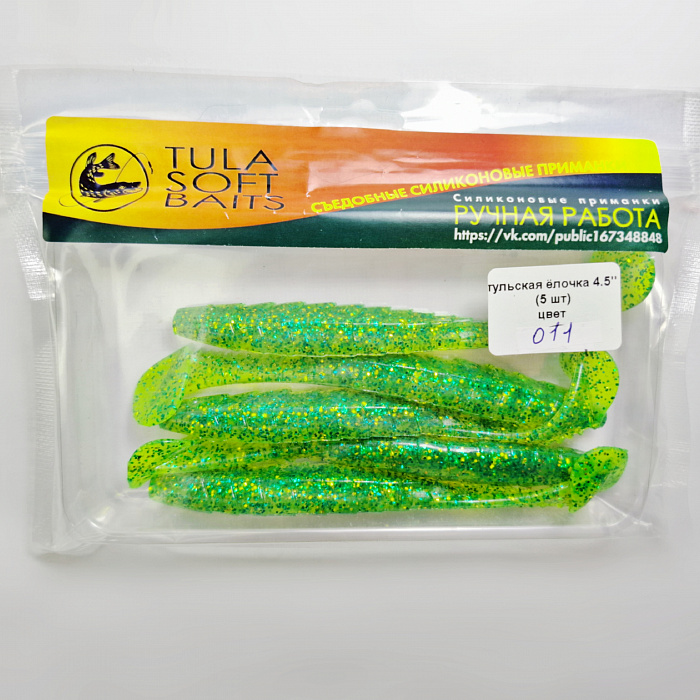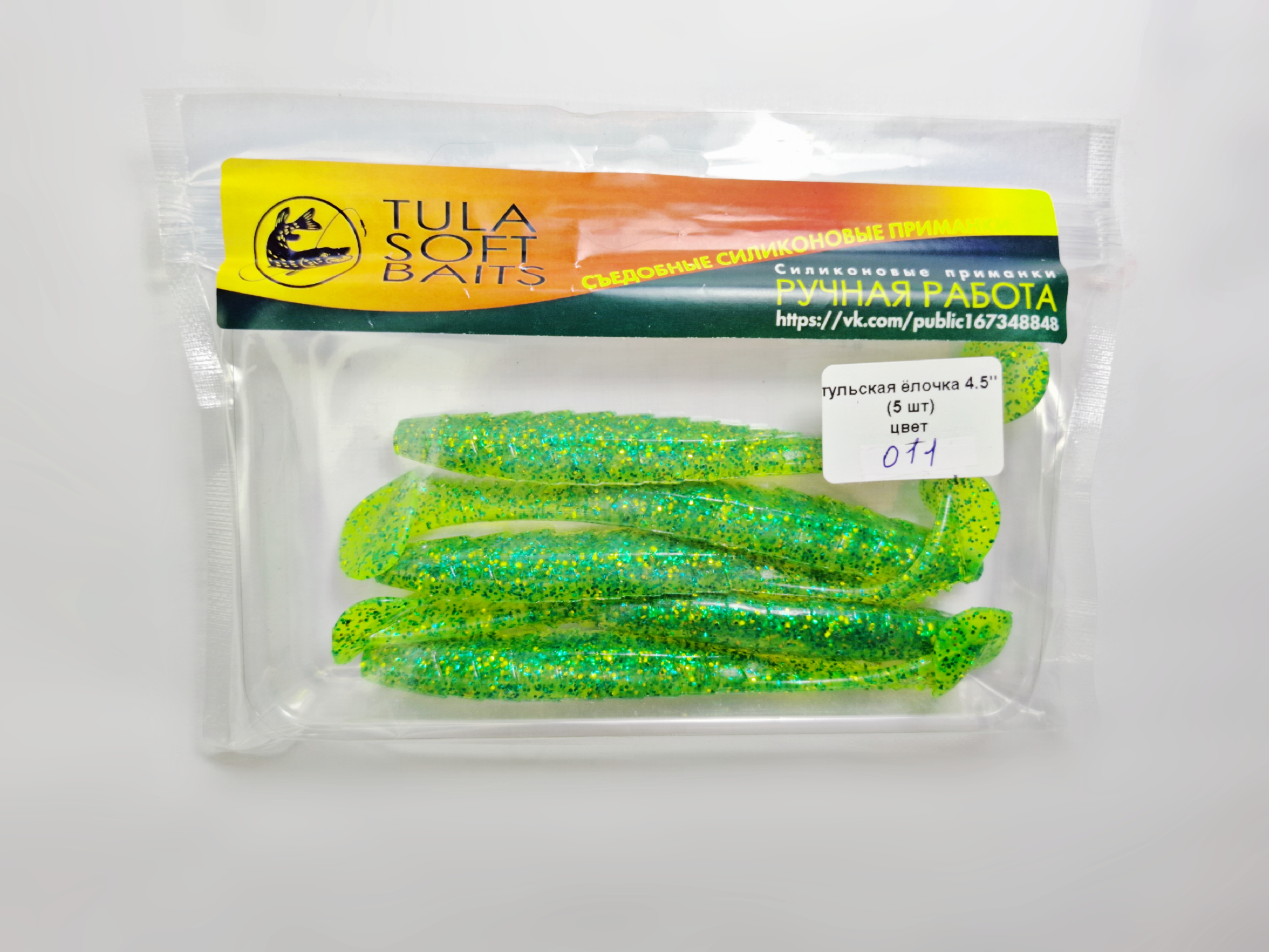 Приманка "Тульская ёлочка" – это исключительный выбор для рыболовов, стремящихся к впечатляющим уловам. Силиконовый виброхвост, выполненный в привлекательном желто-зеленом цвете, имеет длину 4,5 дюйма и идеально подходит для ловли хищной рыбы в различных условиях.