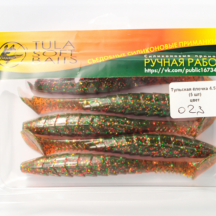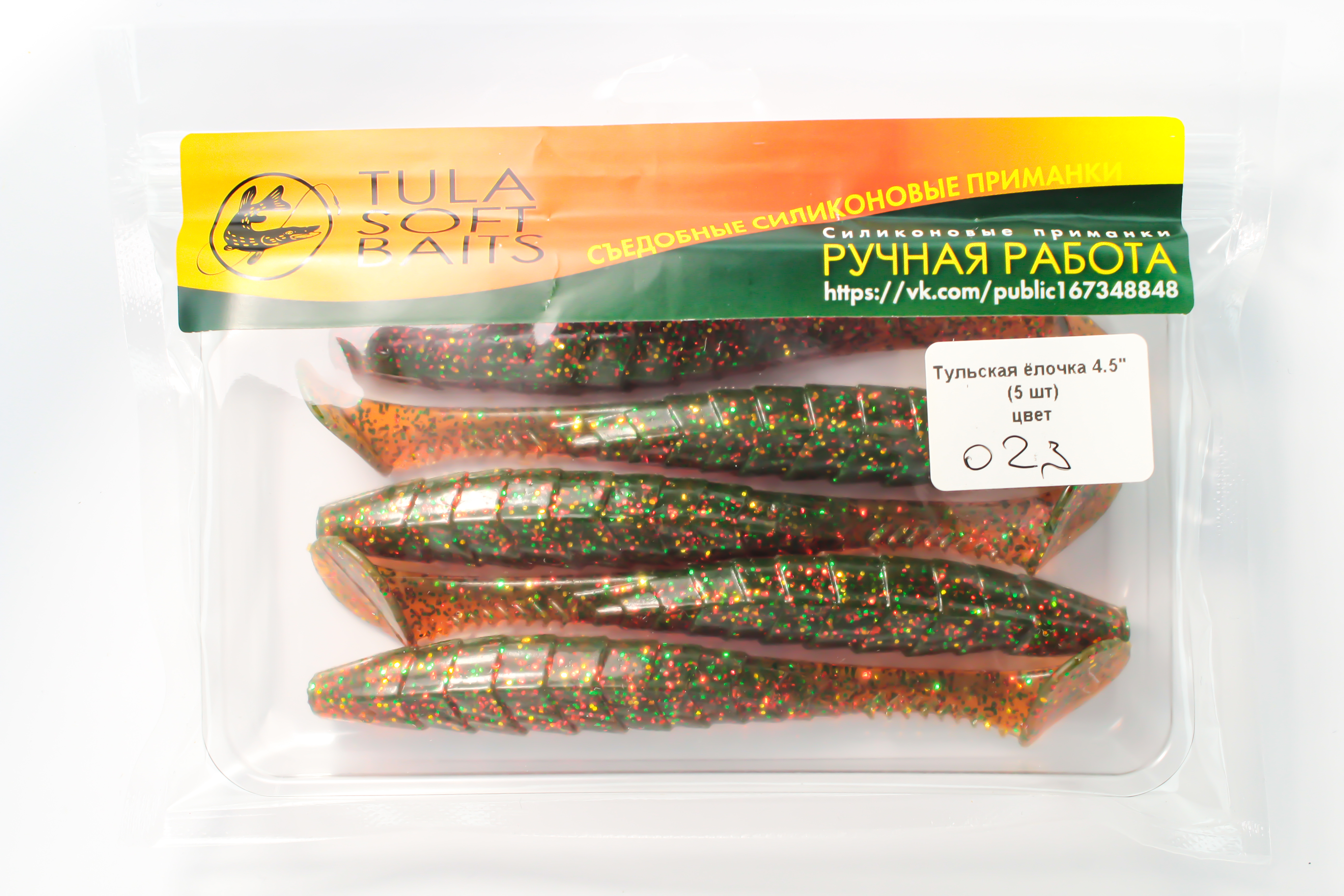 Силиконовые приманки "Тульская ёлочка" идеально подойдут для охоты на щуку и судака. Размер 4,5 дюйма обеспечивает универсальность и привлекательность для крупных трофеев. Уникальная расцветка "машинное масло с красным отливом" имитирует естественный окрас мелкой рыбы, привлекая внимание даже пассивного хищника.