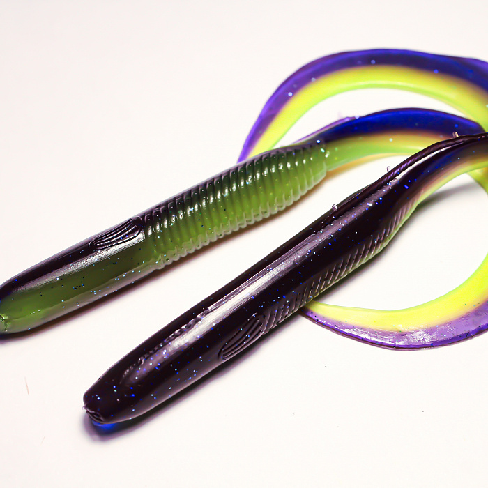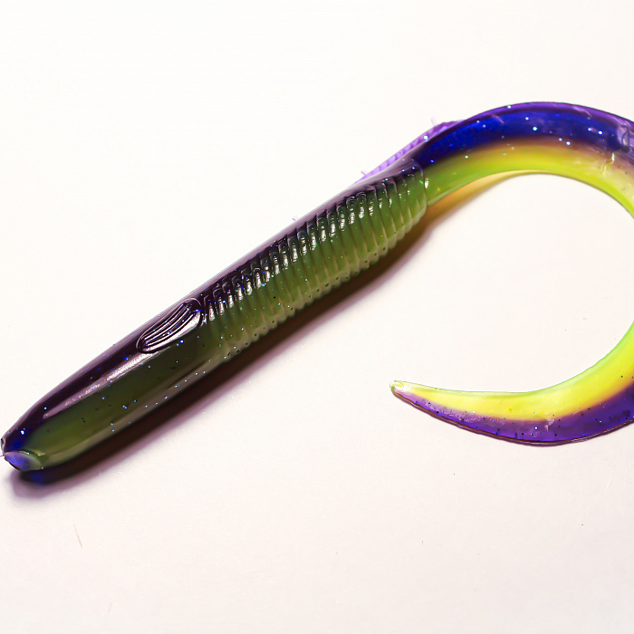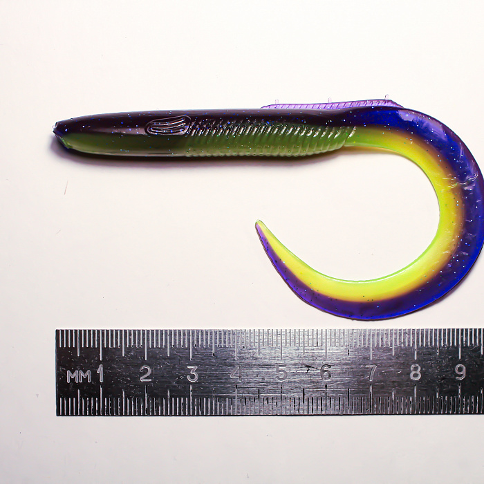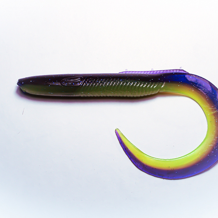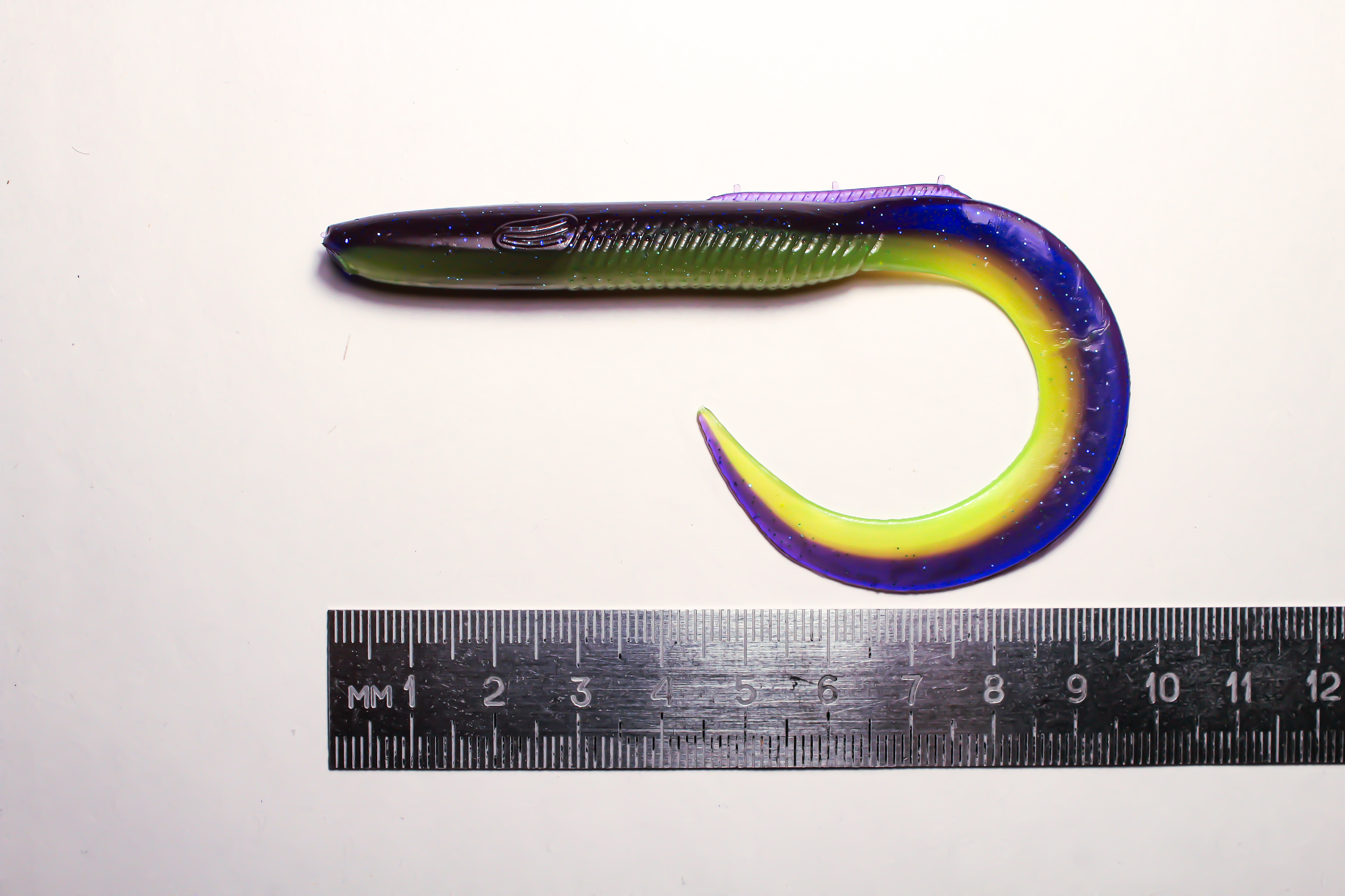 Силиконовые приманки "Угорь" 4 дюйма фиолетово-зелёного цвета — лучшее предложение для истинных любителей рыбной ловли. Эффектный цвет приманки предназначен для привлечения внимания любой хищной рыбы, будь то окунь, судак или щука.