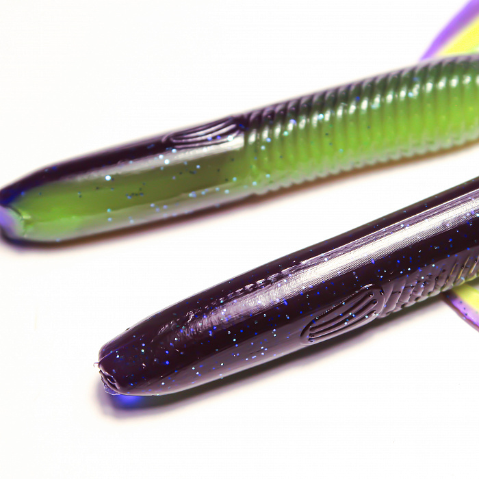 Фиолетово-зелёный оттенок выглядит естественно в водной среде, помогая приманке сливаться с окружающей обстановкой и оставаться незамеченной в прозрачной воде. Одновременно эта цветовая гамма выделяет приманку на фоне дна, притягивая взгляд рыбы и стимулируя поклёвку.