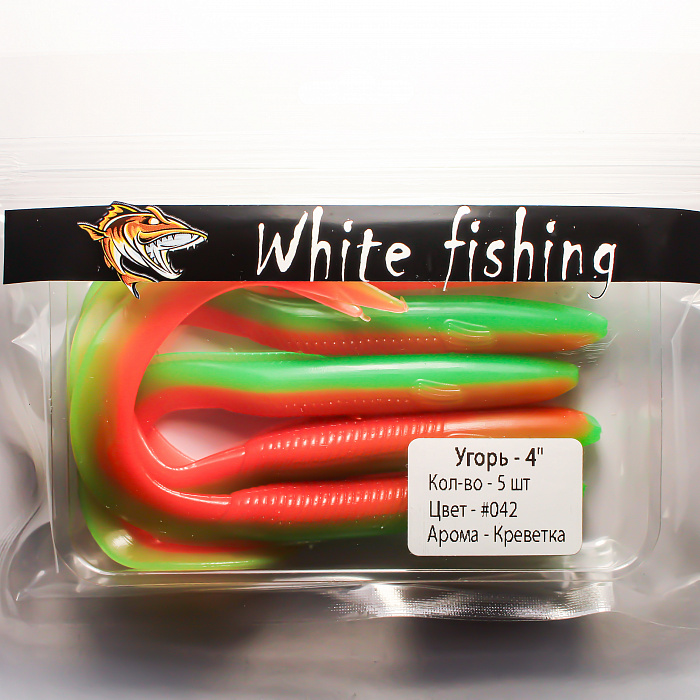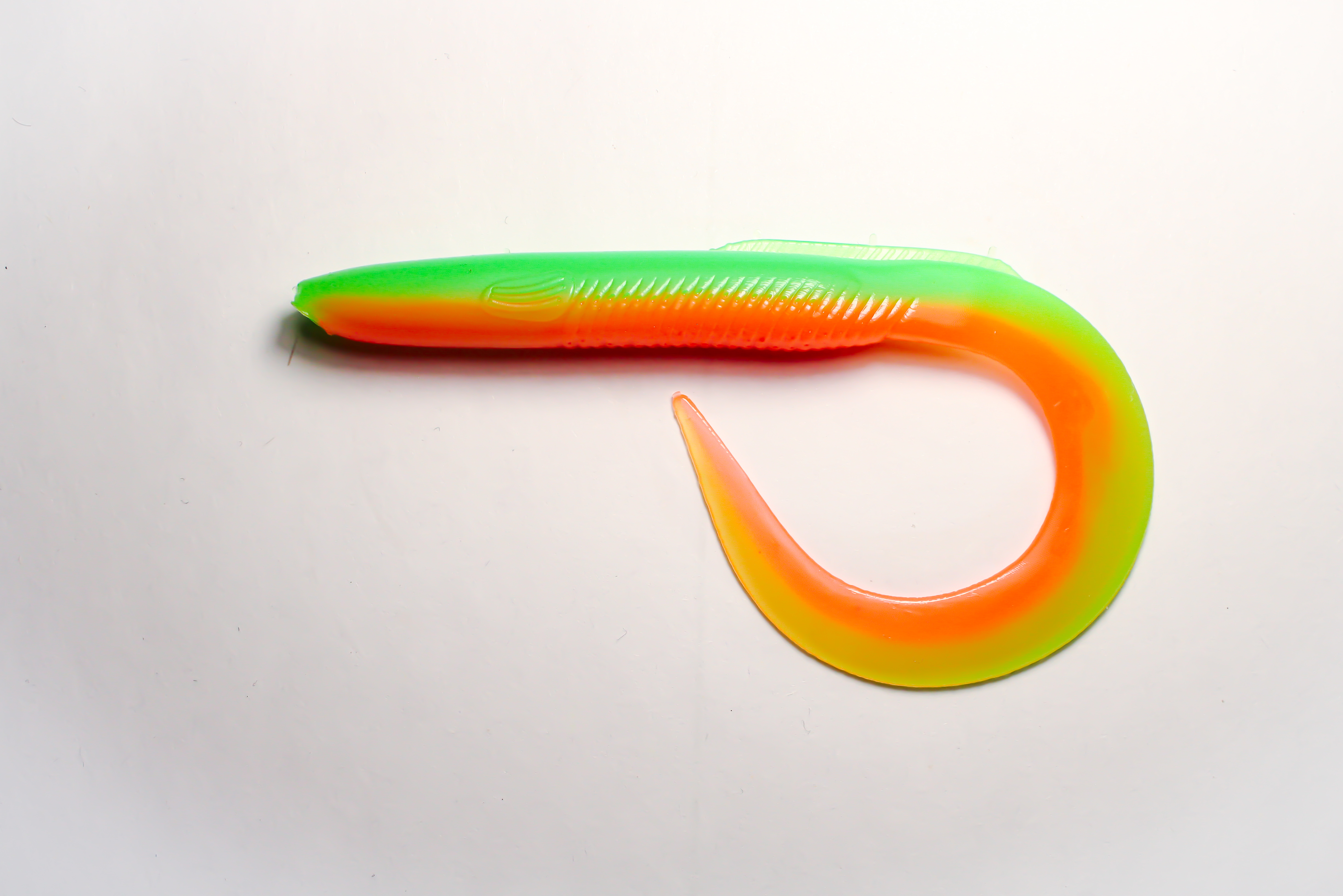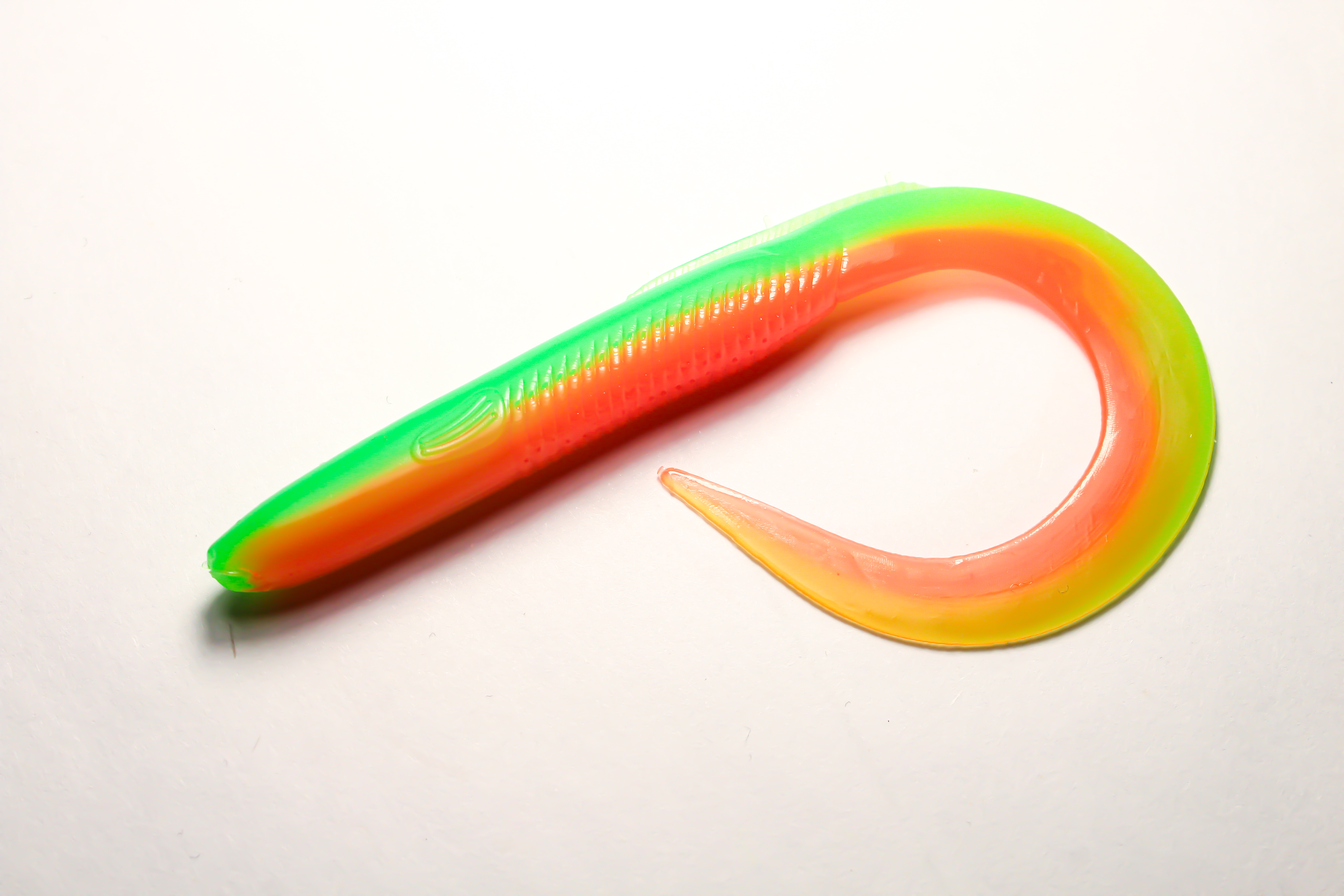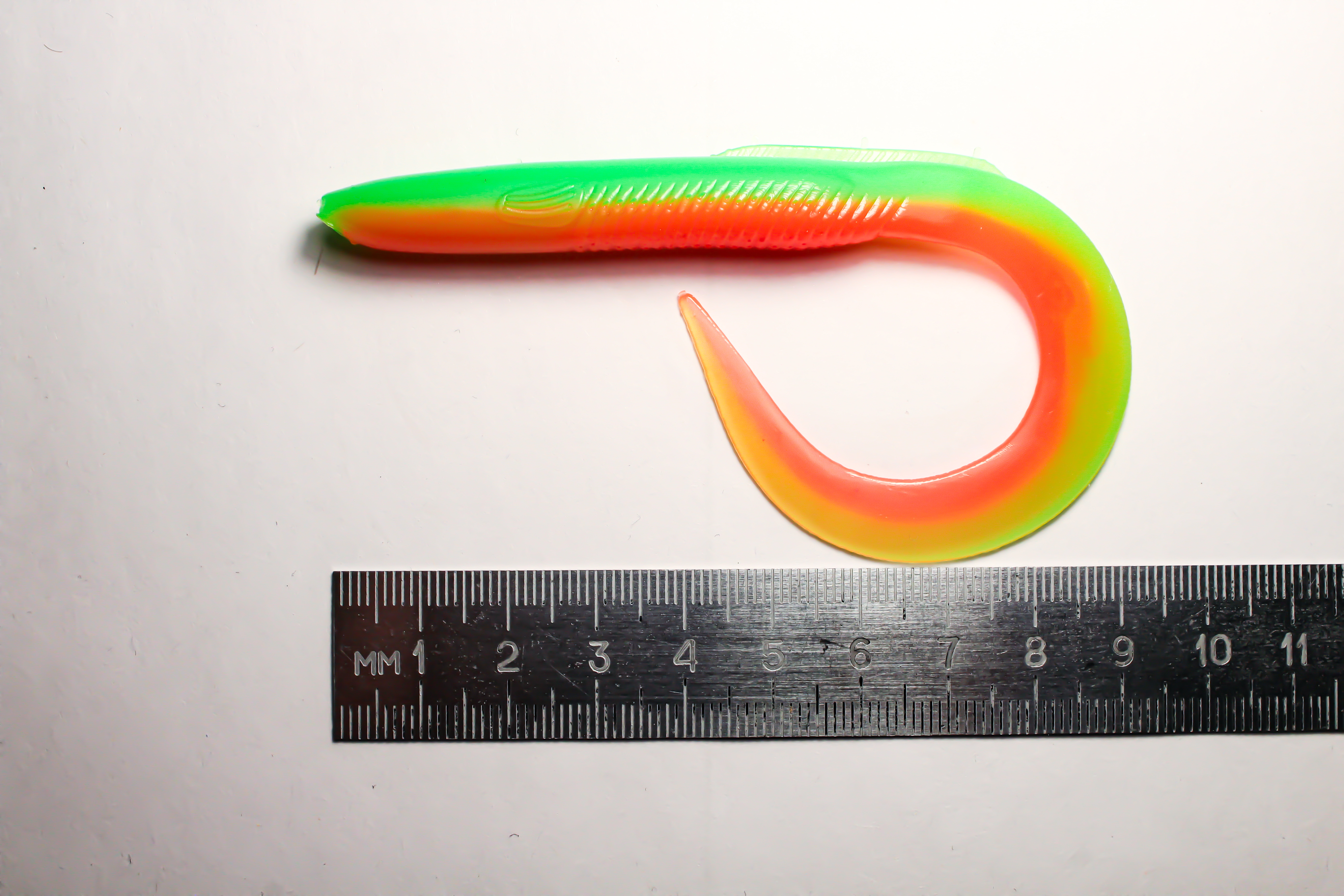 Силиконовые приманки "Угорь" 4 дюйма зелено-оранжевого цвета — превосходный выбор для фанатов рыбалки, мечтающих о богатом улове. Модели данного цвета удачно сочетаются с условиями ловли, такими как прозрачность воды, облачность и глубина.