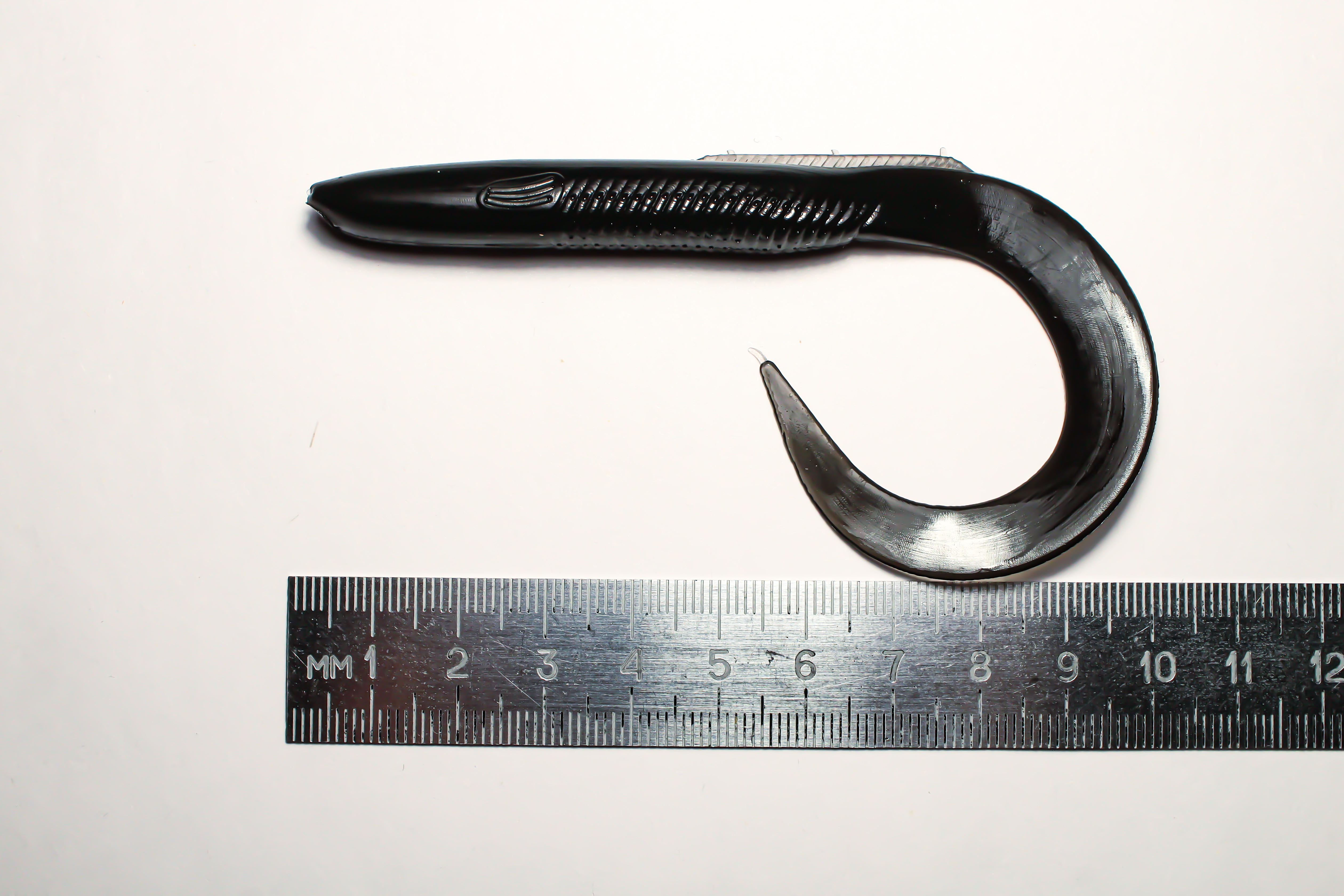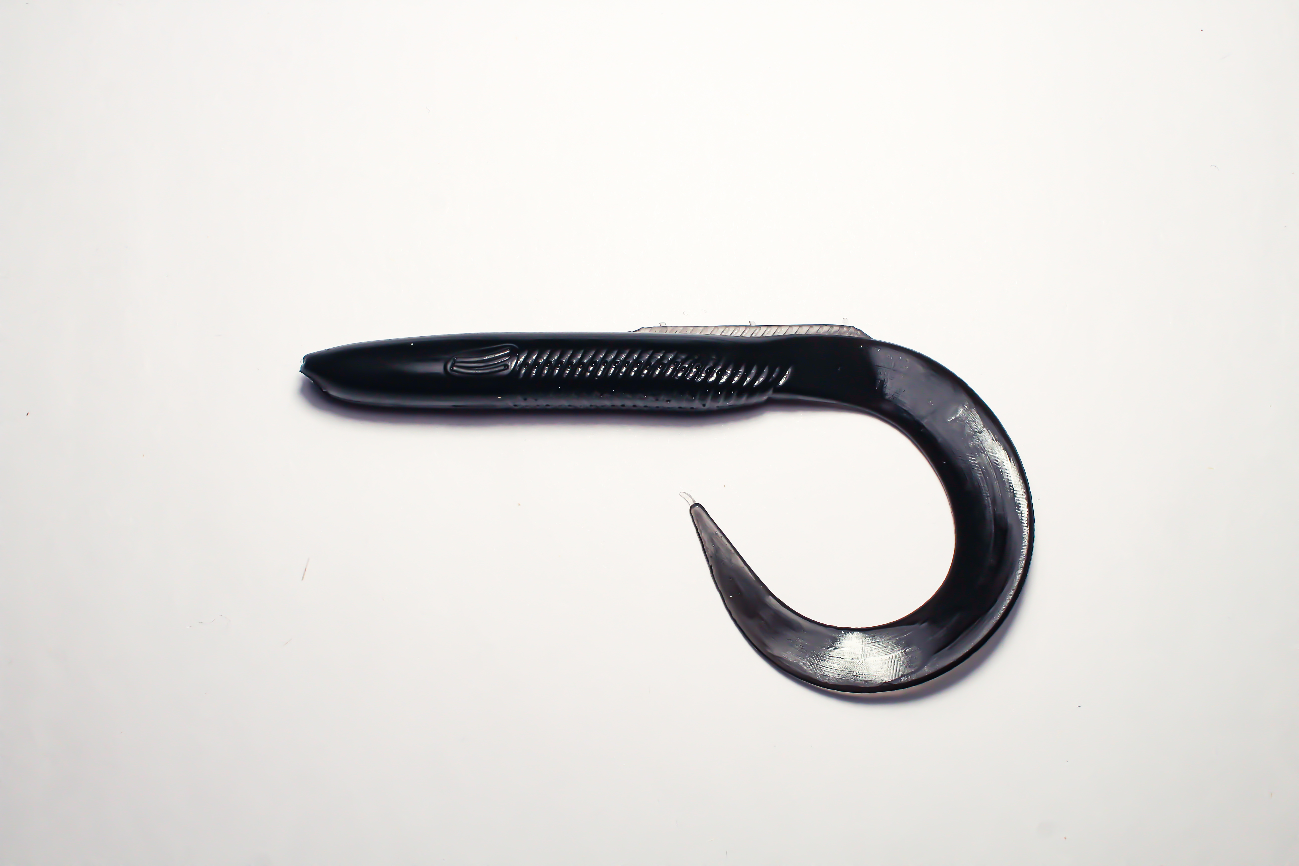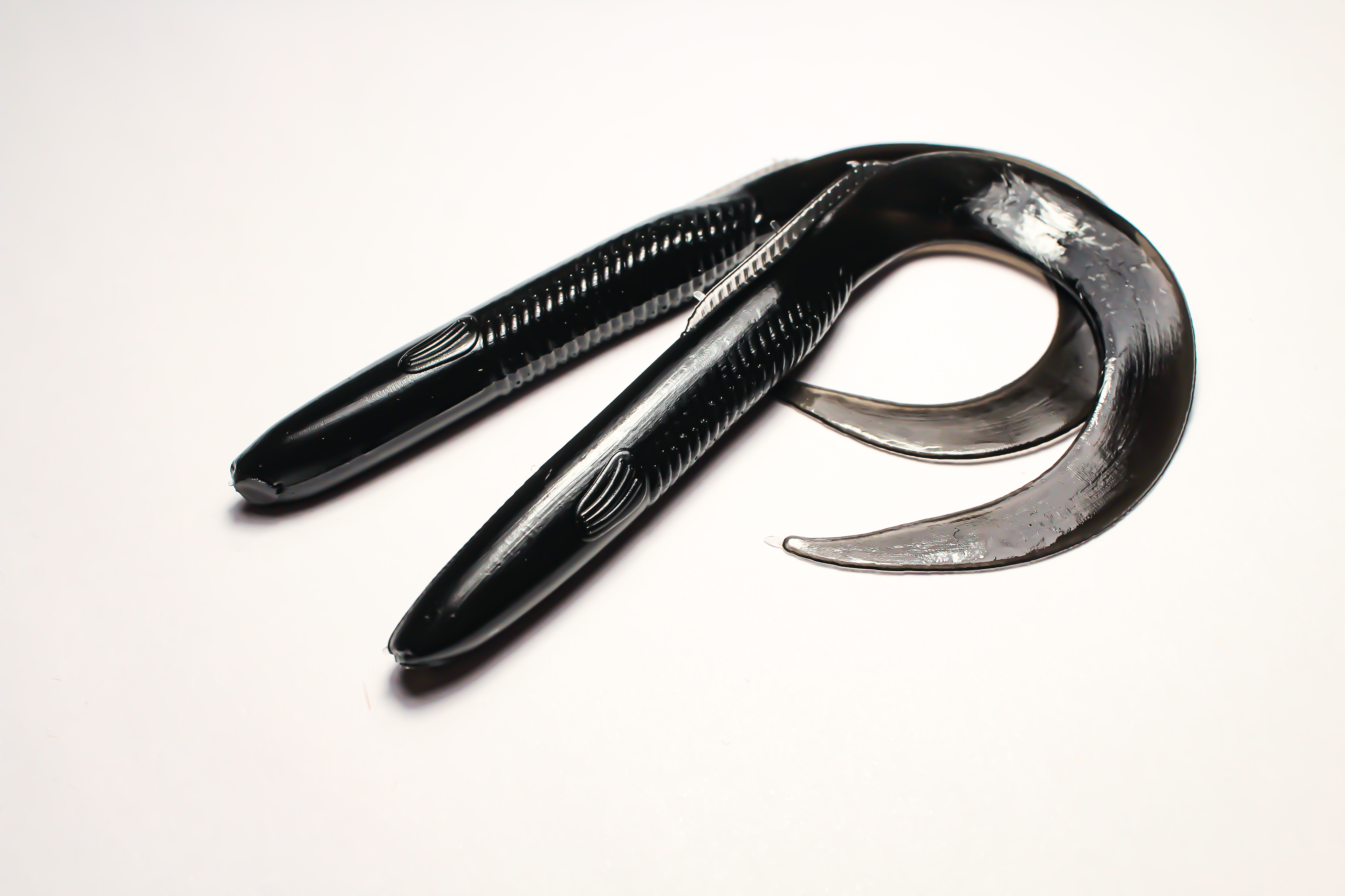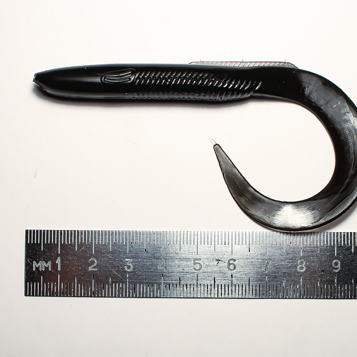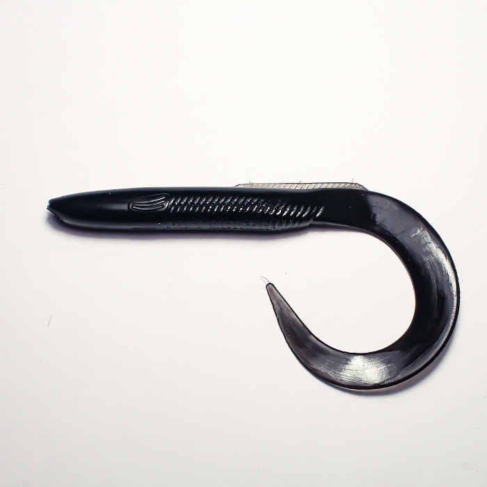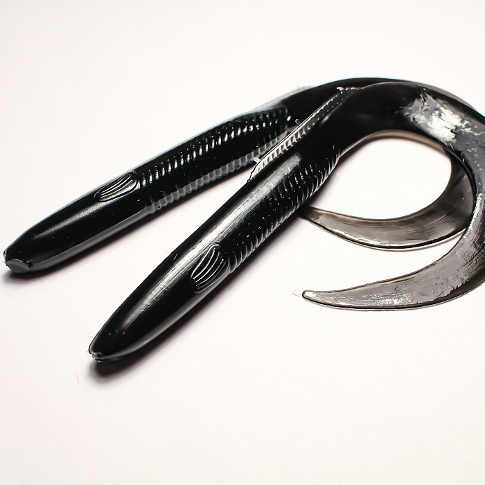 Чёрный цвет приманки уверенно выделяется в мутной воде и условиях пониженного освещения, привлекая внимание рыбы даже в условиях плохой видимости. Твистеры данной окраски подходят для ловли как в дневное, так и ночное время суток, являясь идеальным решением для пасмурной погоды или глубоководья.