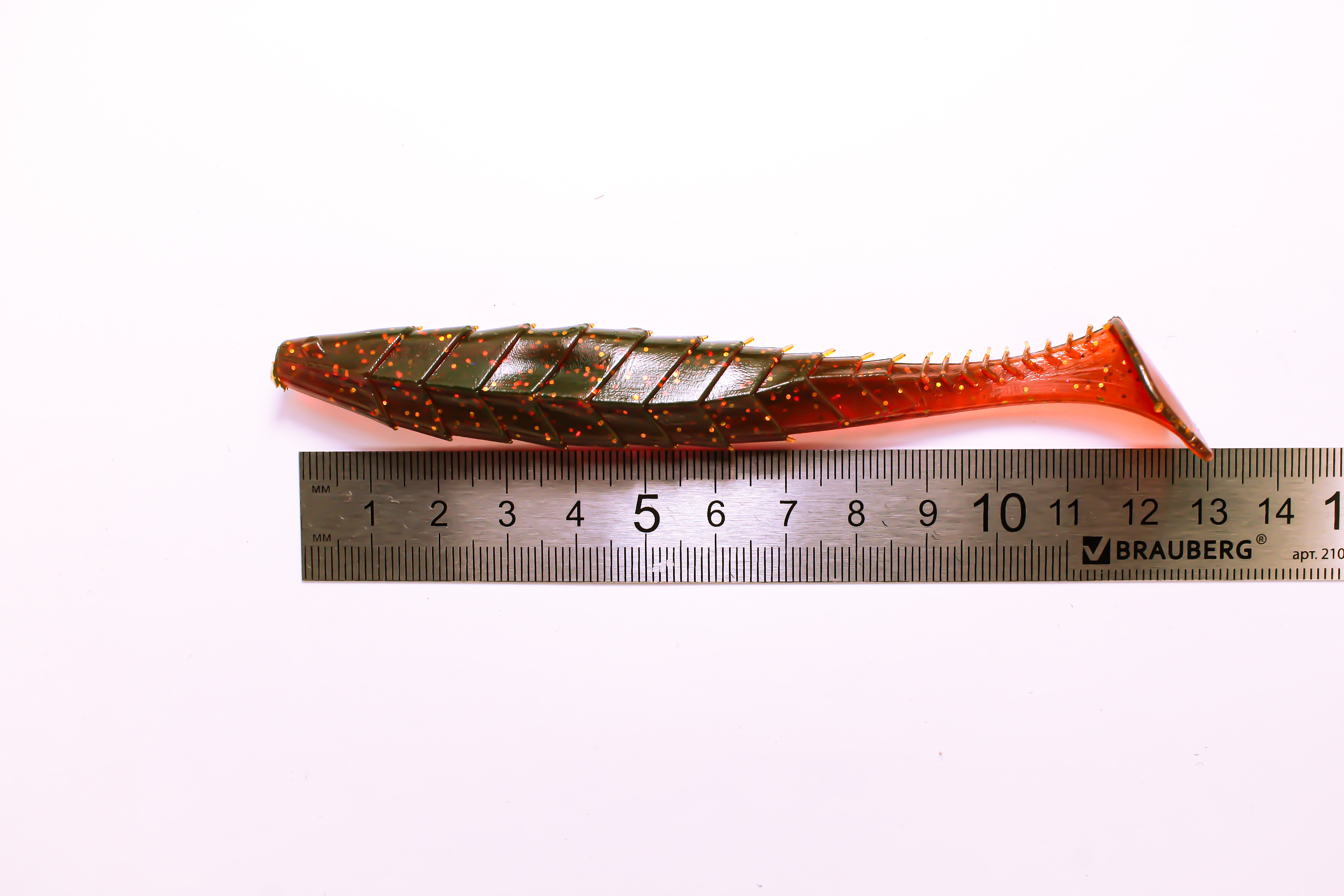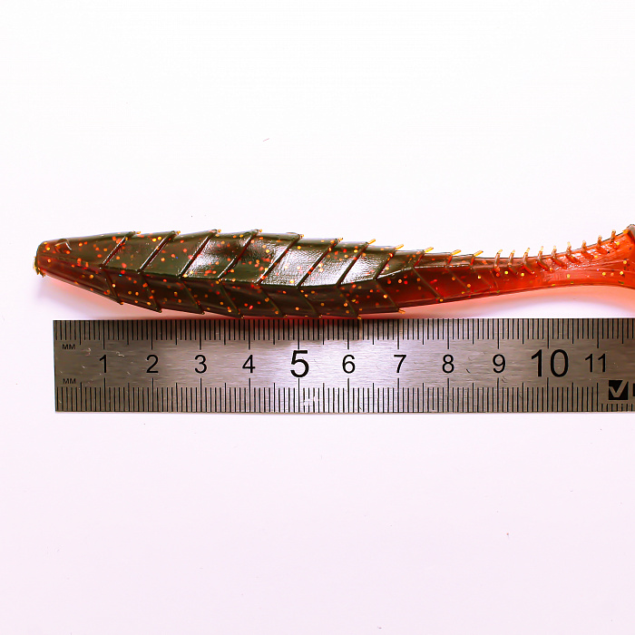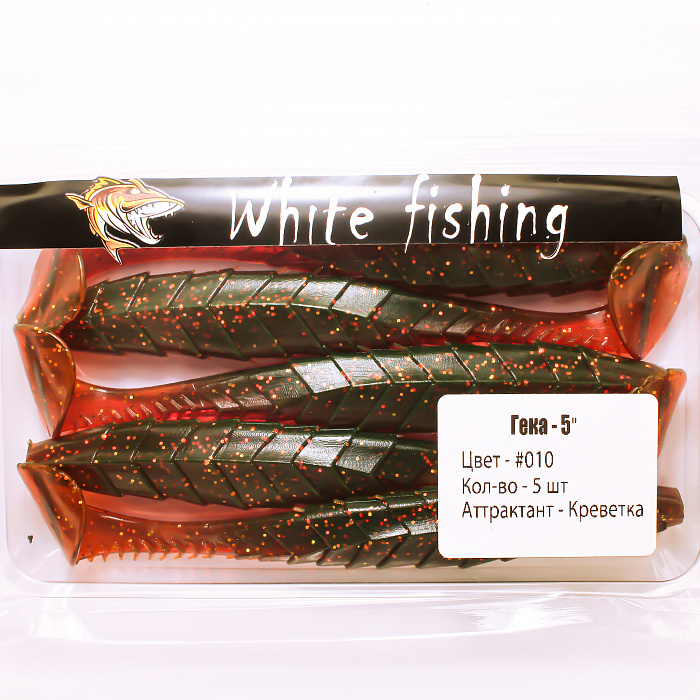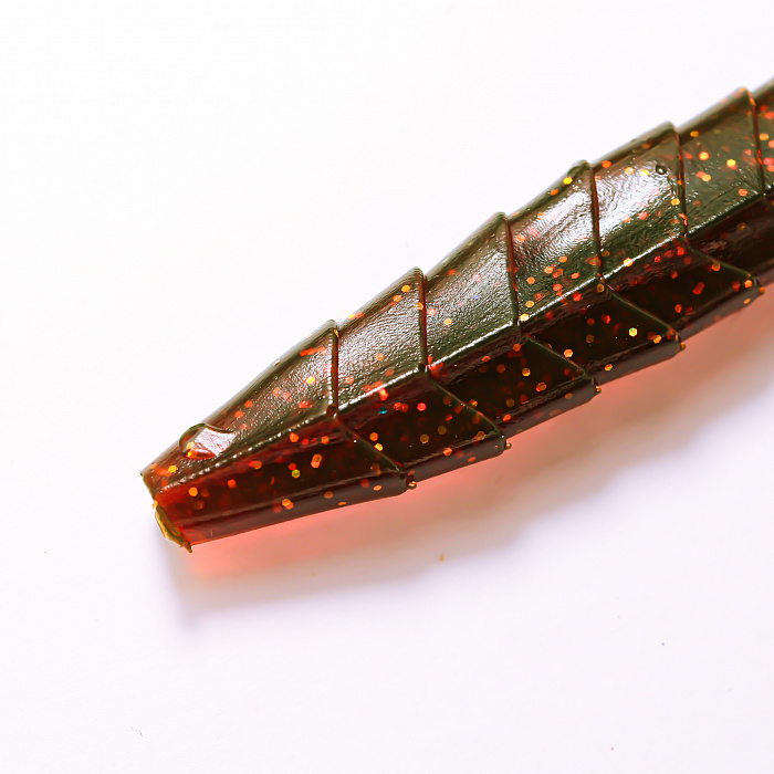 Приманка Гека выполнена из прочного и эластичного силикона, обладающего отличными рабочими характеристиками. Модель имеет длину 5 дюймов, что позволяет уверенно привлекать внимание крупных особей судака, щуки и окуня. Темно-красный цвет с блестками обеспечивает дополнительную визуальную привлекательность, особенно в условиях слабой освещенности и мутной воды.