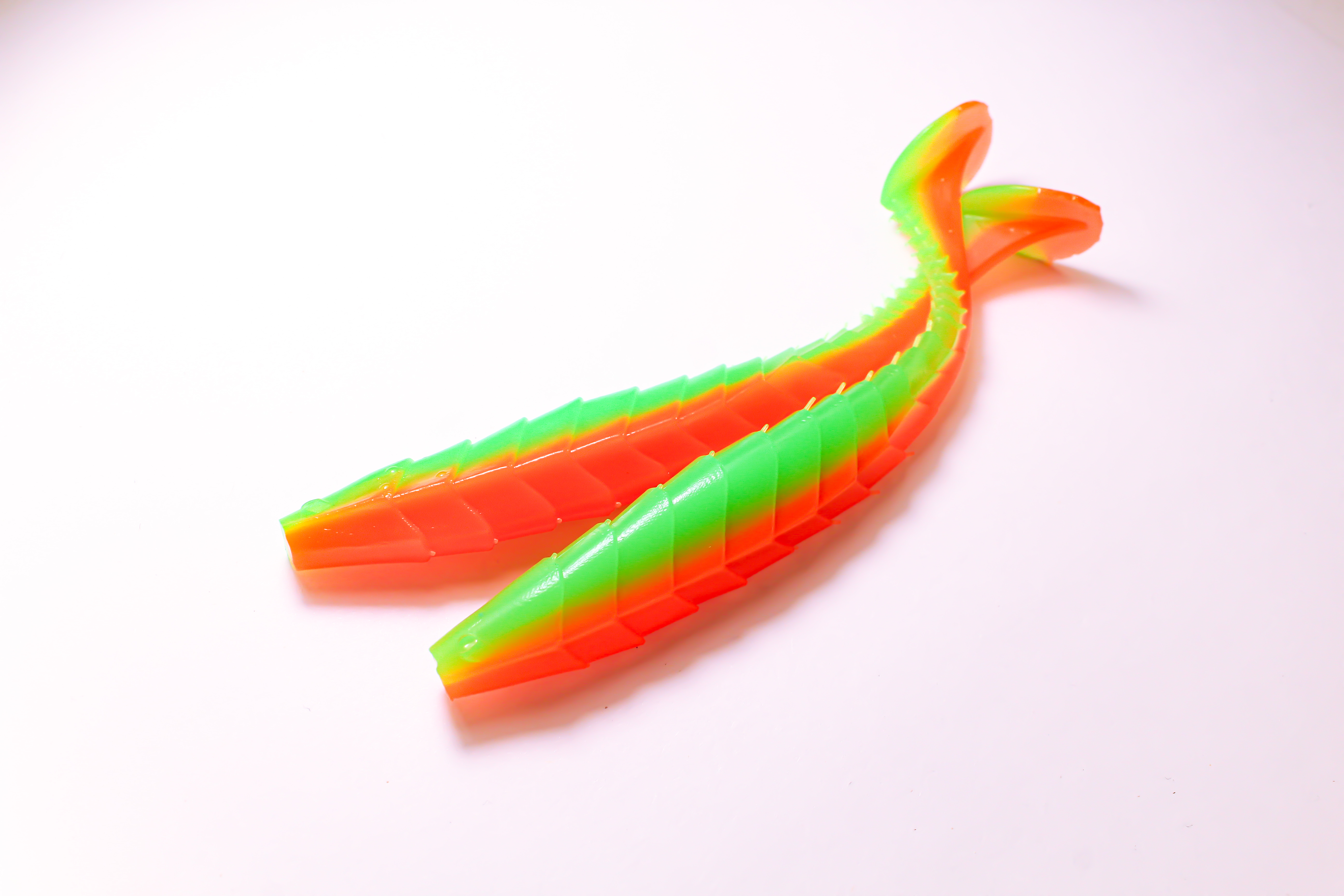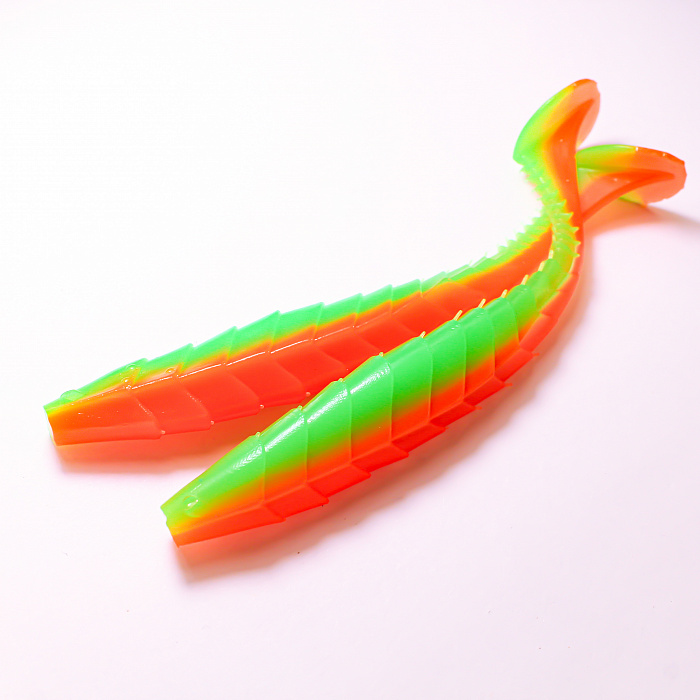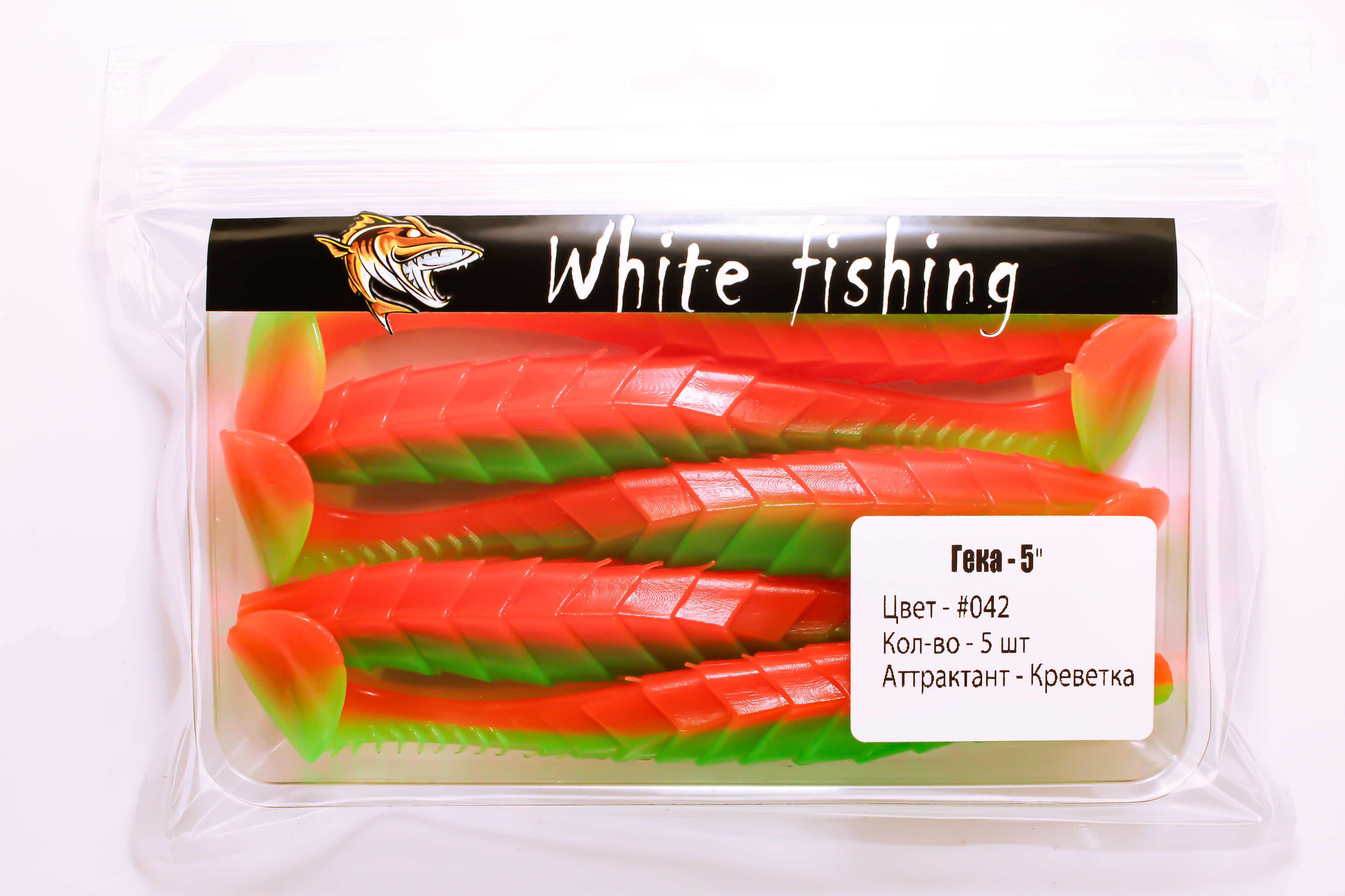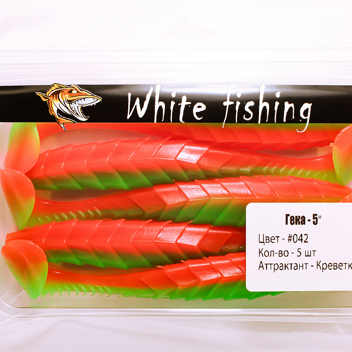 Приманка Гека изготовлена из высококачественного силикона, гарантируя длительный срок службы и привлекательную игру в воде. Длина 5 дюймов позволяет успешно ловить крупные особи щуки, судака и окуня. Красно-зеленый ("арбуз") цвет удачно сочетает два оттенка, делая приманку заметной и соблазнительной для хищника.