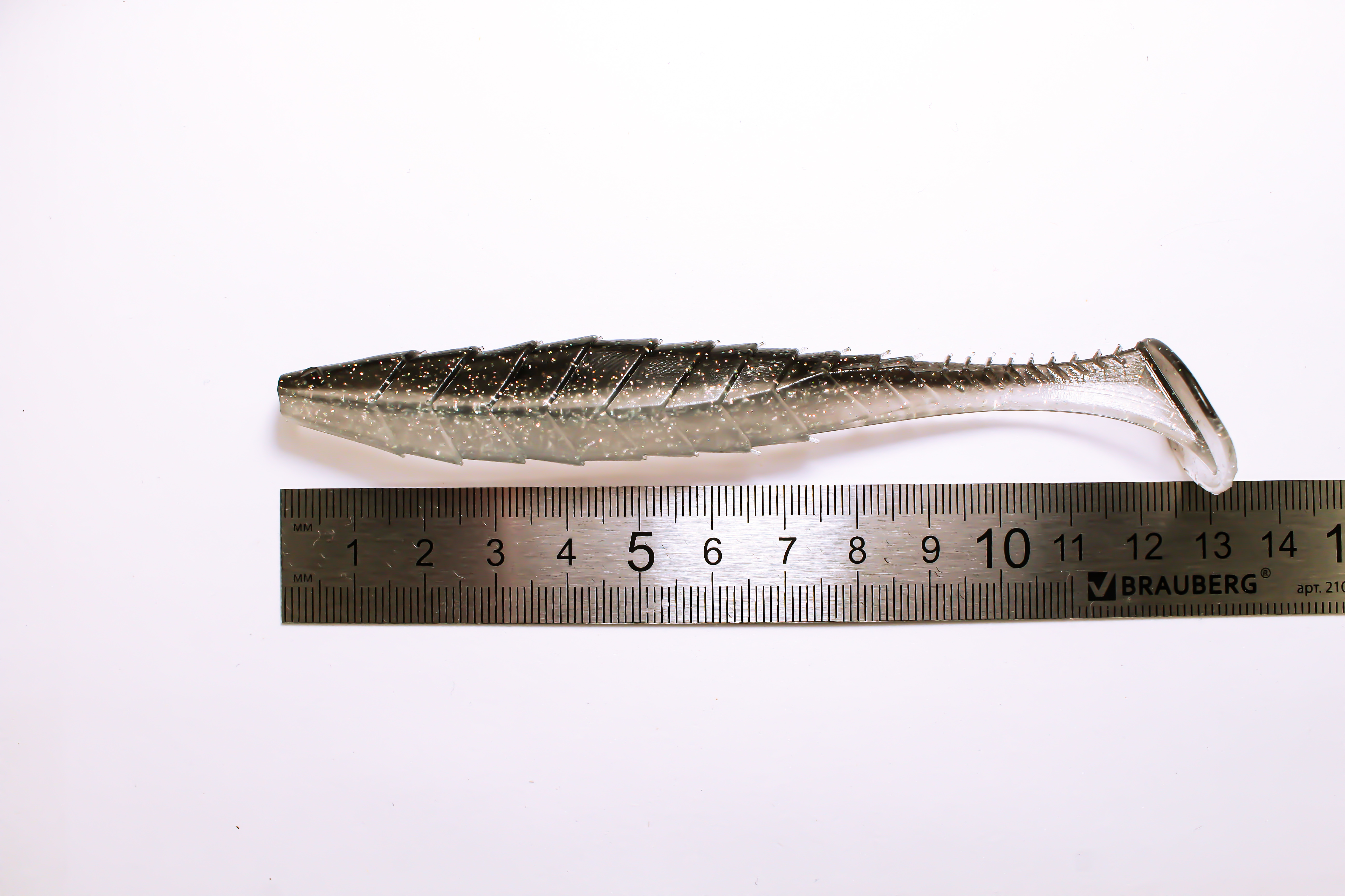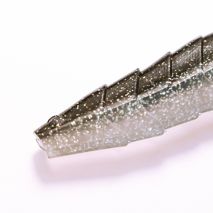 Приманка Гека изготовлена из прочного и долговечного силикона, сочетающего прочность и эластичность. Длина 5 дюймов идеально подходит для ловли крупных хищников, таких как щука, судак и крупный окунь. Натуральный цвет с металлическими блестками обеспечивает хорошую видимость приманки в воде, привлекая внимание рыбы даже в условиях недостаточной освещенности.