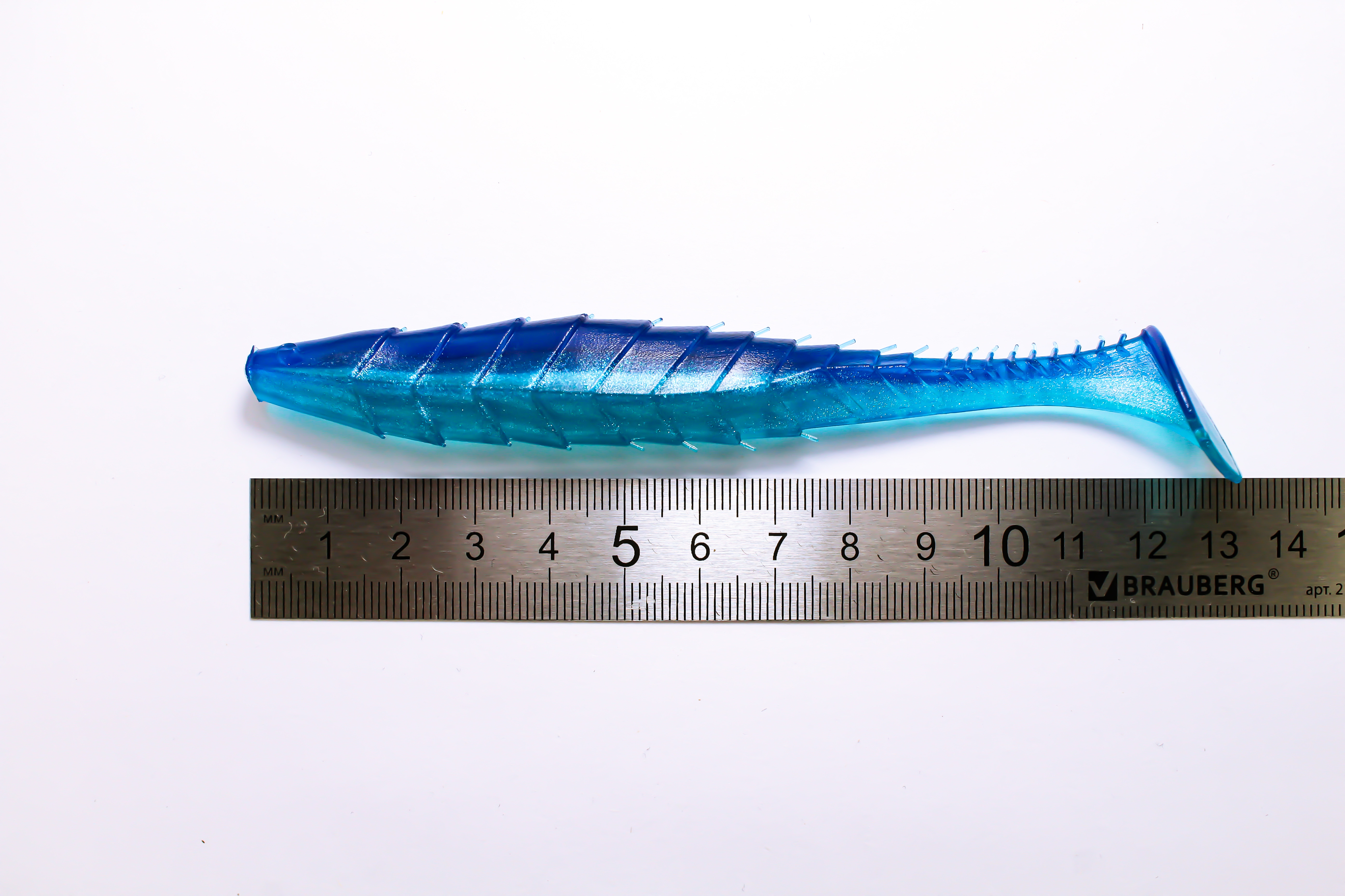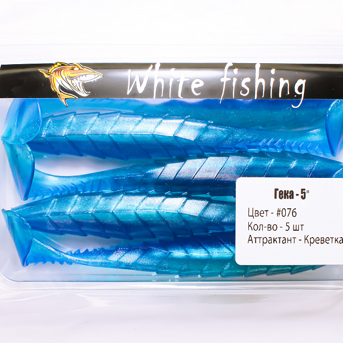 Приманка Гека сделана из качественного силикона, что гарантирует долгий срок службы и превосходную игру в воде. Её размер в 5 дюймов является оптимальным для привлечения внимания крупных хищников, таких как щука, судак и крупный окунь. Эксклюзивный сине-голубой цвет делает приманку невидимой в прозрачной воде, максимально естественно воспроизводя природный облик мальков.